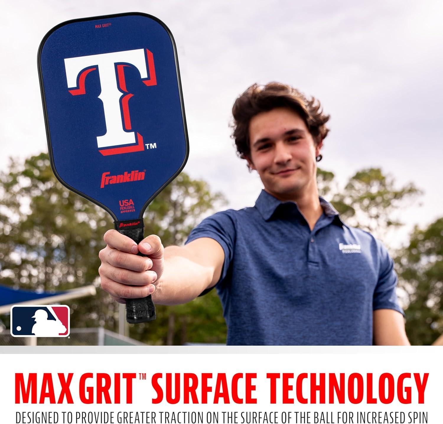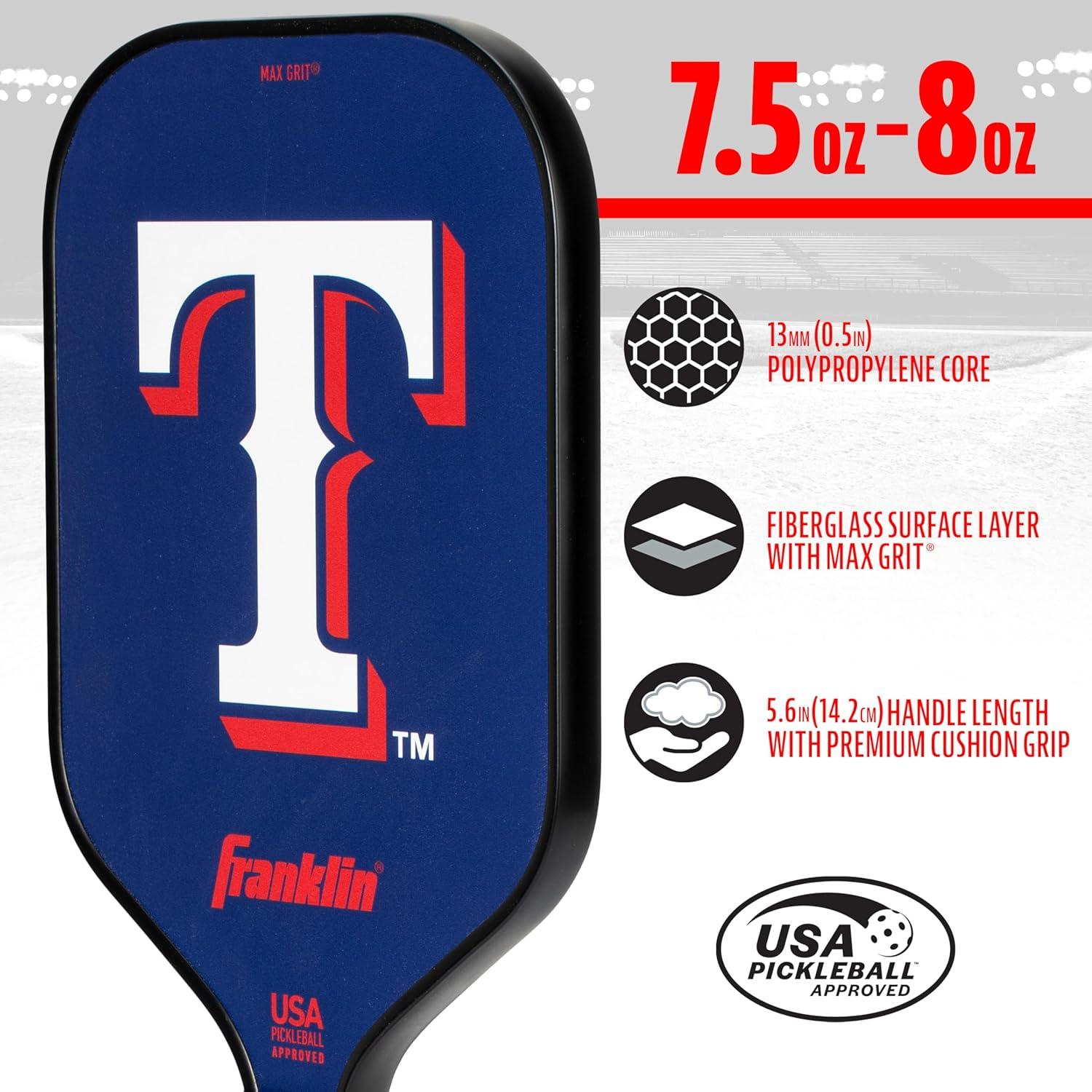 Franklin Sports MLB Team Pickleball Paddles – Official MLB Baseball Team Logo + Colors Pickleball Paddles – Signature Series 13MM Pickleball Paddle with MaxGrit – USA Pickleball (USAPA) Approved(Texas Rangers)