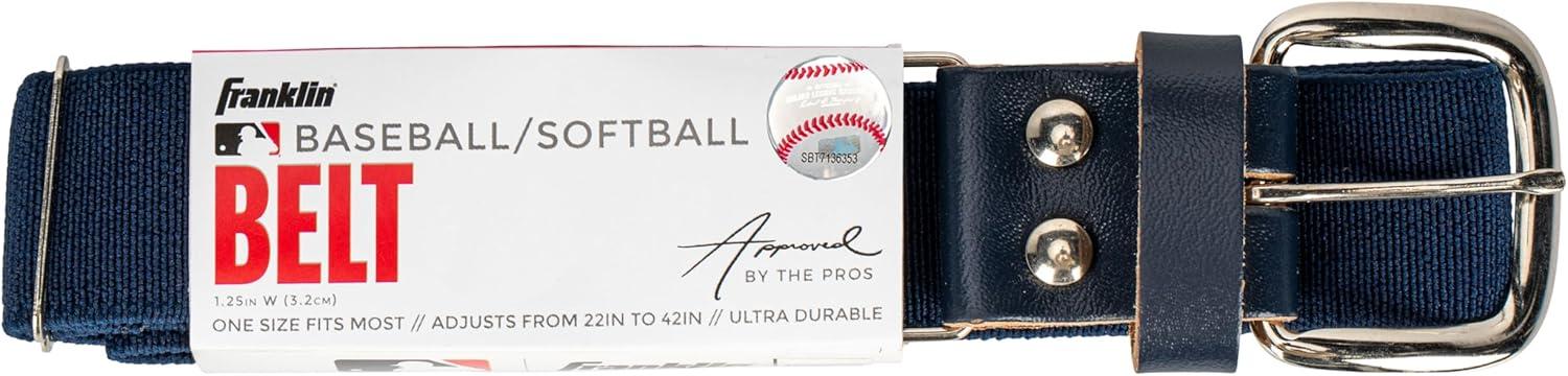 Suit up in style this baseball or softball season with Franklin Sports MLB Adjustable Baseball + Softball Belts! These youth and adult baseball and softball belts are the perfect uniform accessory for any teeball, baseball or softball player. Available in two size options, 22″ – 42″ and 27″ – 48″ inches, these belts are designed for baseball players of all sizes. These adjustable length baseball belts are constructed so both adult and youth players can find the perfect belt for their uniform. T Constructed with an expanding polyester rubber elastic for a comfortable fit, these baseball and softball belts are designed to stretch without pinching. Plus, the steel belt buckle is built to last season after season. These adult and youth belts come in an assortment of colors so players can find the perfect belt to match their baseball or softball uniform. For players from teeball to adult leagues, Franklin Sports' MLB Baseball and Softball Belts are the perfect uniform accessory!