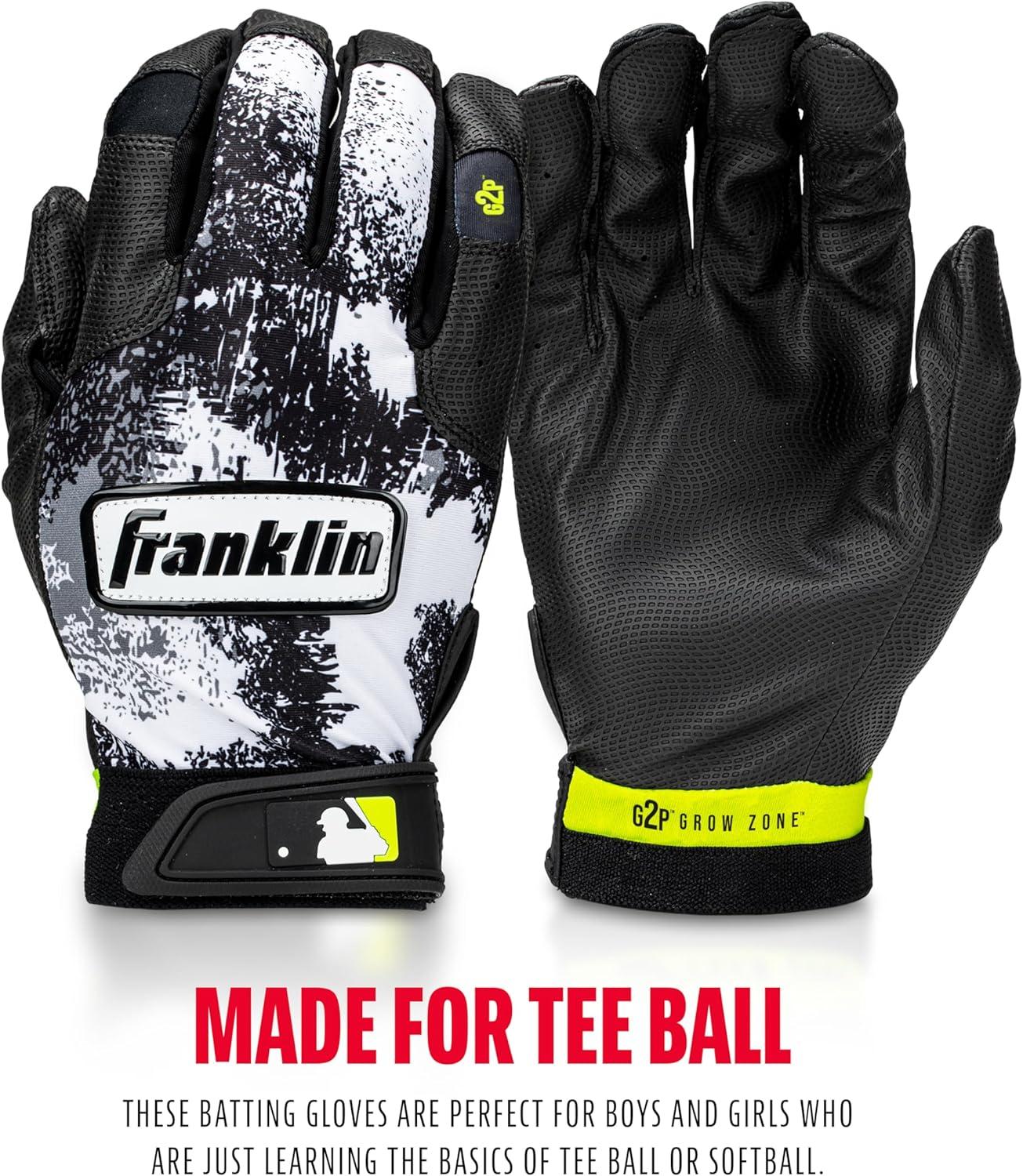 Franklin Sports MLB Youth Teeball Batting Gloves – Flexible Pro Kids Baseball + Softball Gloves for Boys + Girls(Black/White)