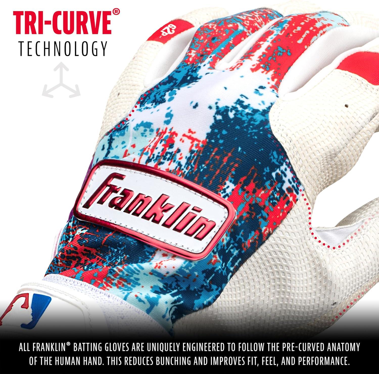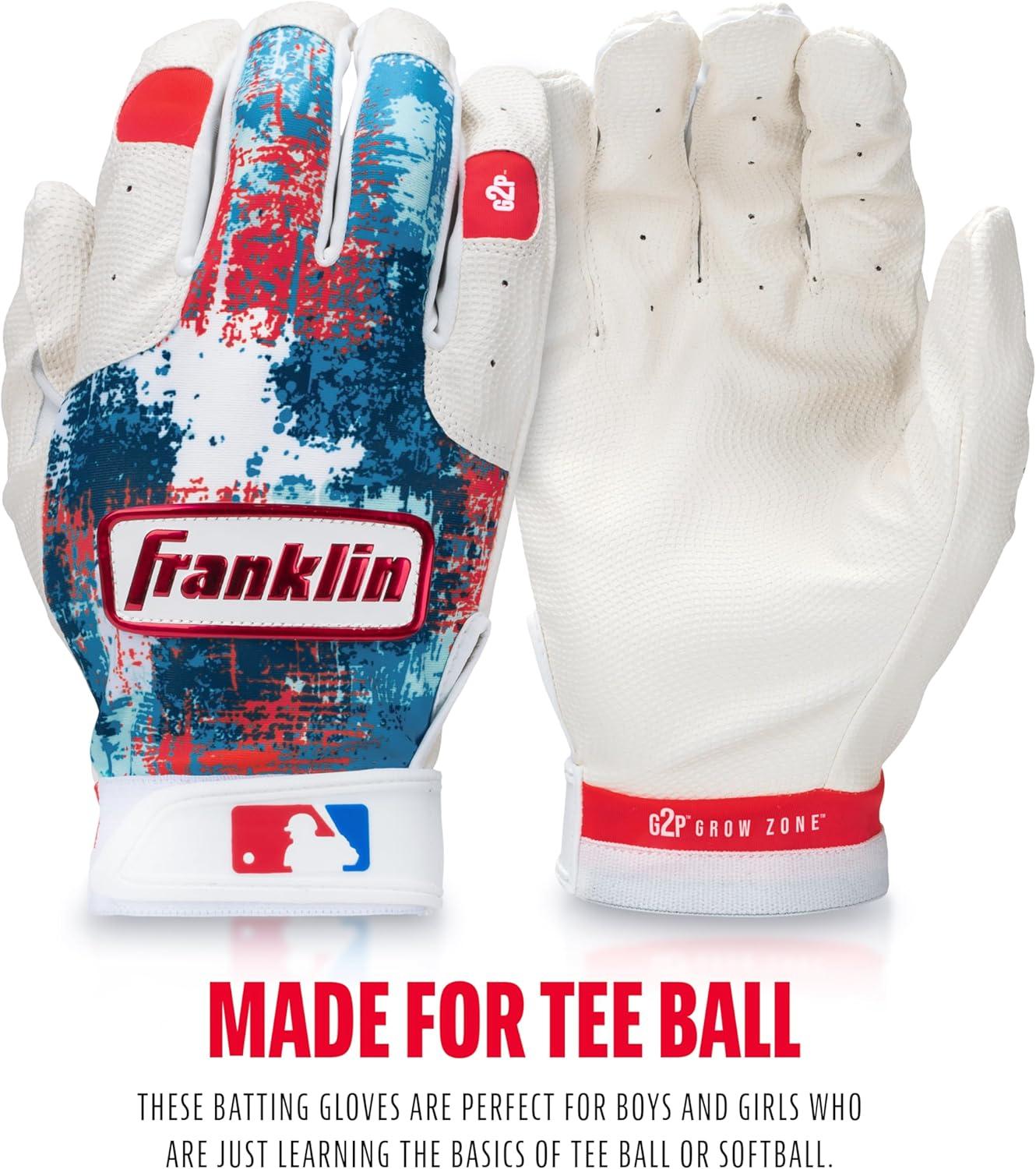 Franklin Sports MLB Youth Teeball Batting Gloves – Flexible Pro Kids Baseball + Softball Gloves for Boys + Girls(Red/White/Blue)