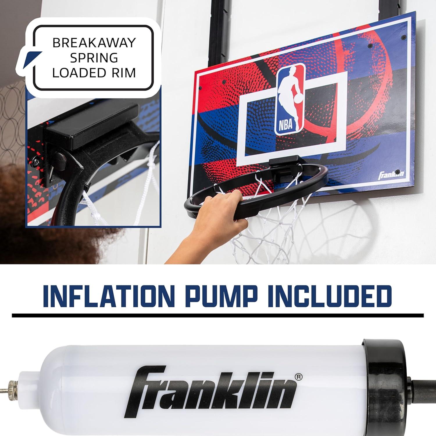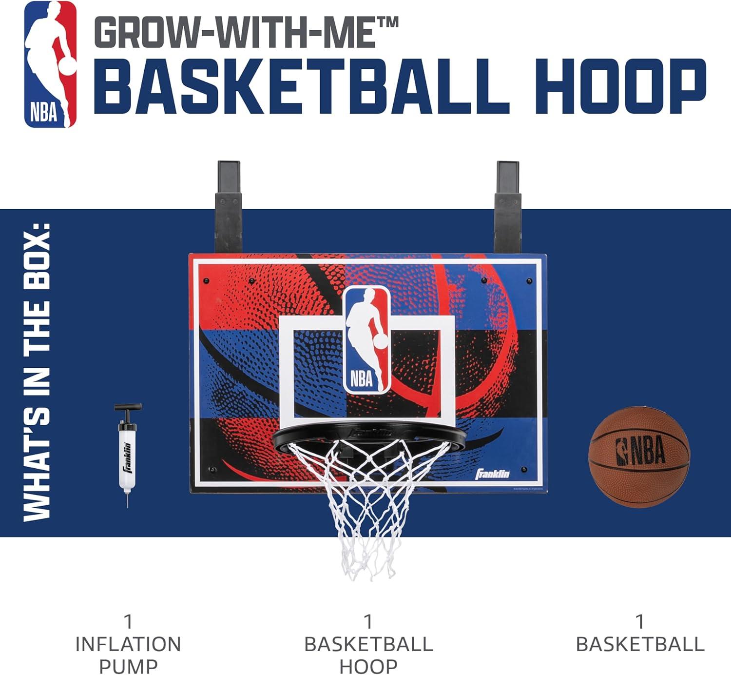 Franklin Sports NBA Grow-with-Me Kids Mini Basketball Hoop Set – Over The Door Indoor Hoop for Kids – Includes (1) Adjustable Height Basket, (1) Mini Youth Basketball + Air Pump – Ages 3+