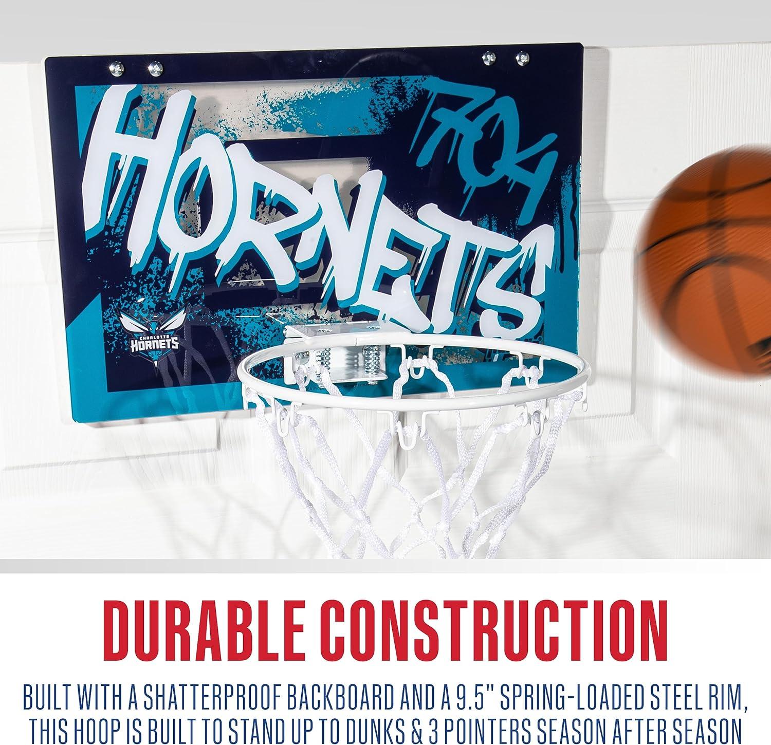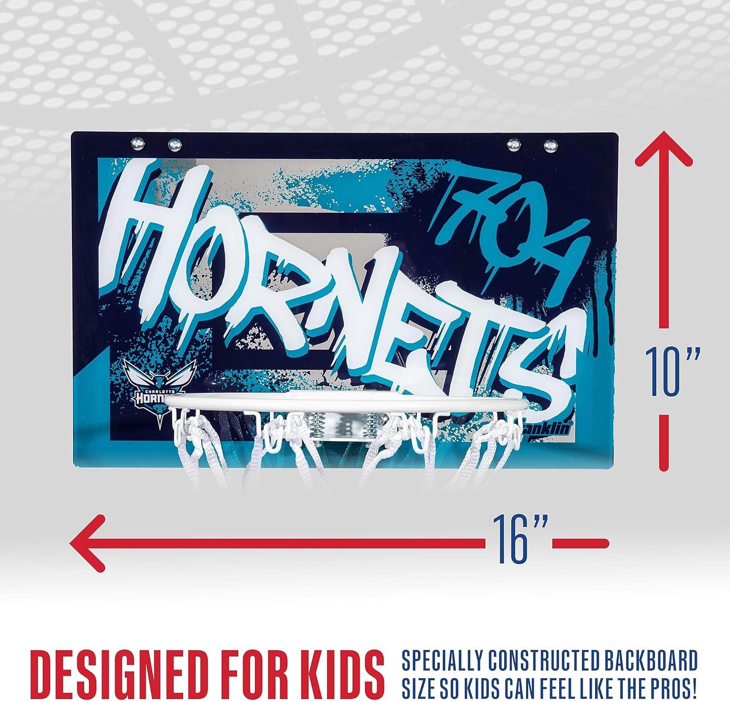 Franklin Sports NBA Team Over the Door Basketball Hoops – Kids Indoor Mini Basketball Hoop + Ball Set – NBA Fan Mini Hoops(Charlotte Hornets)