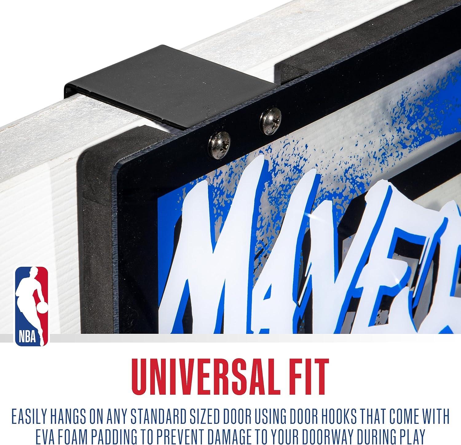 FULL SET INCLUDED: This NBA set comes complete with (1) over the door hoop, (1) 5″ mini basketball, and (1) air pump so you have everything you need to get the game started!