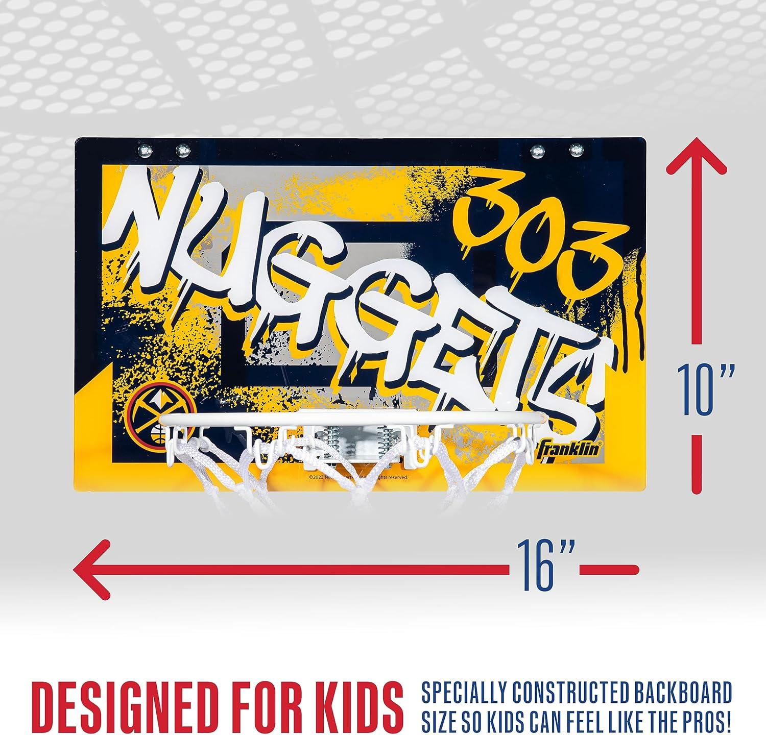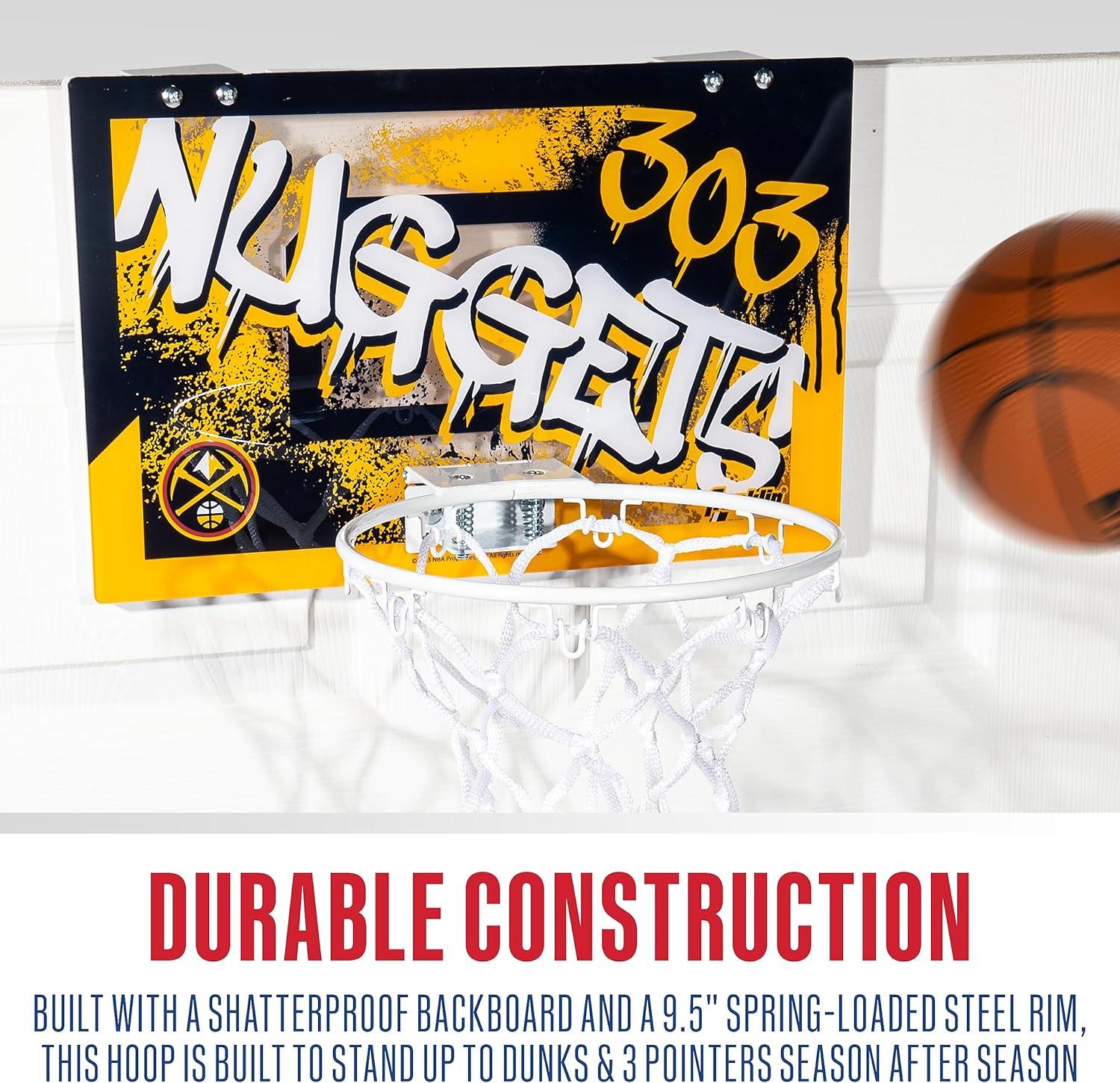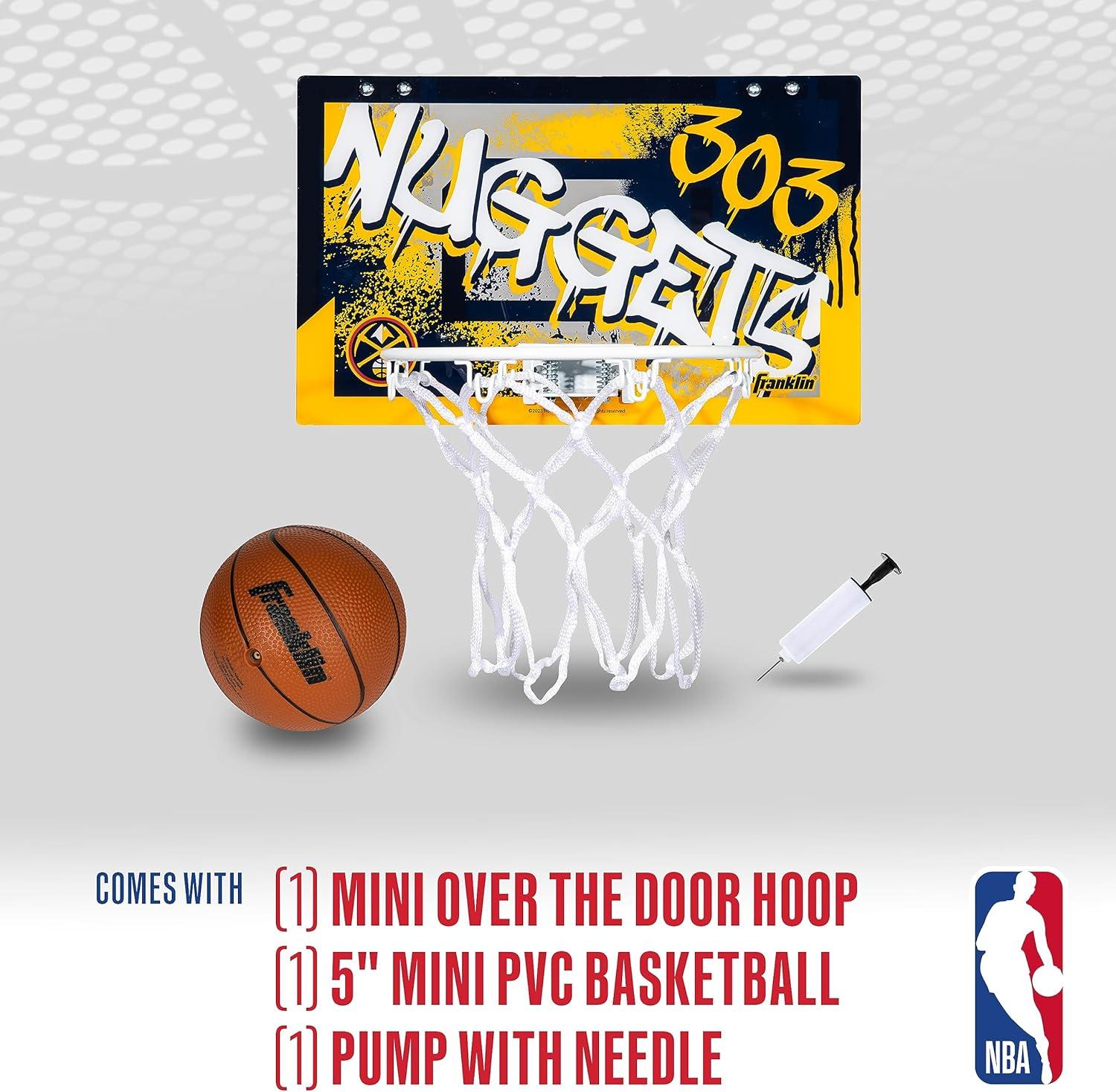 Franklin Sports NBA Team Over the Door Basketball Hoops – Kids Indoor Mini Basketball Hoop + Ball Set – NBA Fan Mini Hoops(Denver Nuggets)