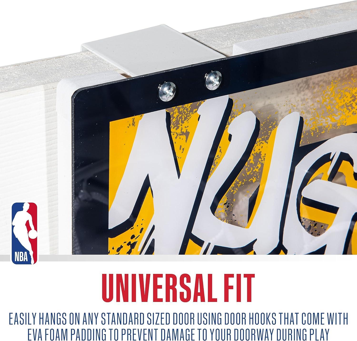 FULL SET INCLUDED: This NBA set comes complete with (1) over the door hoop, (1) 5″ mini basketball, and (1) air pump so you have everything you need to get the game started!