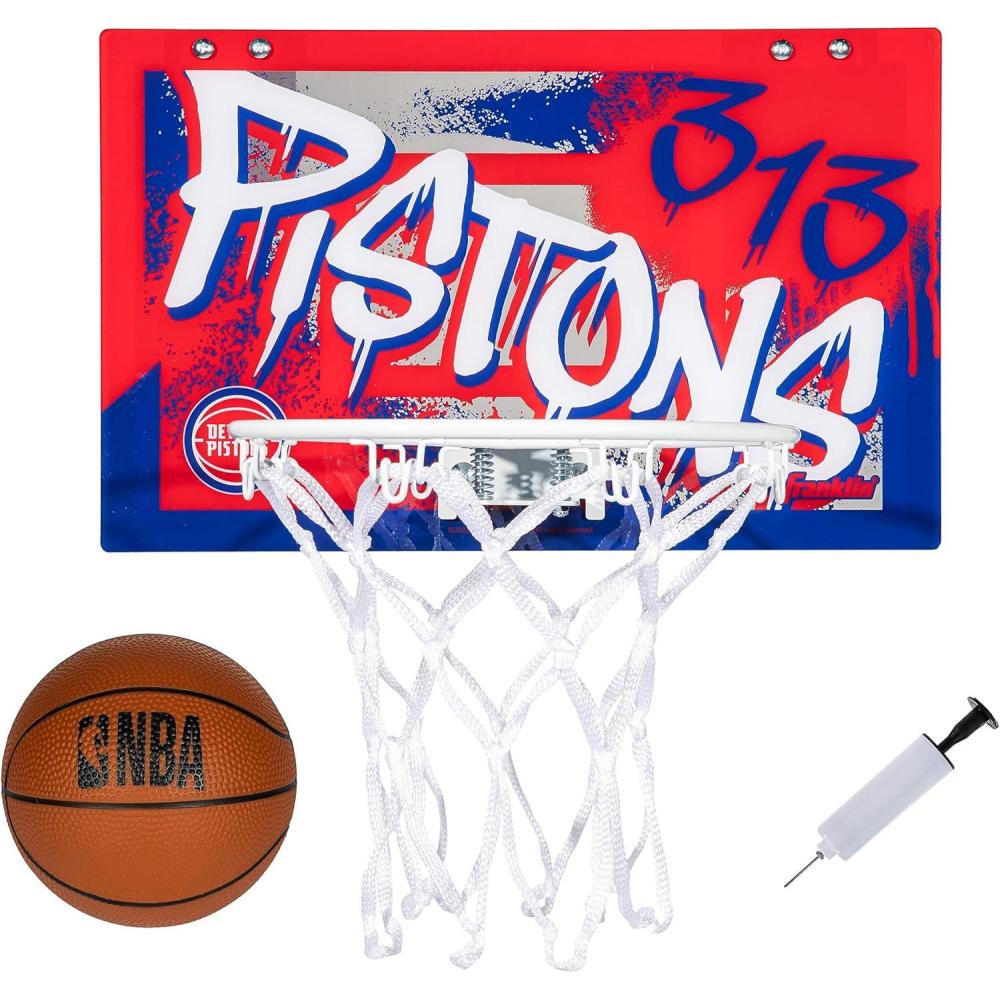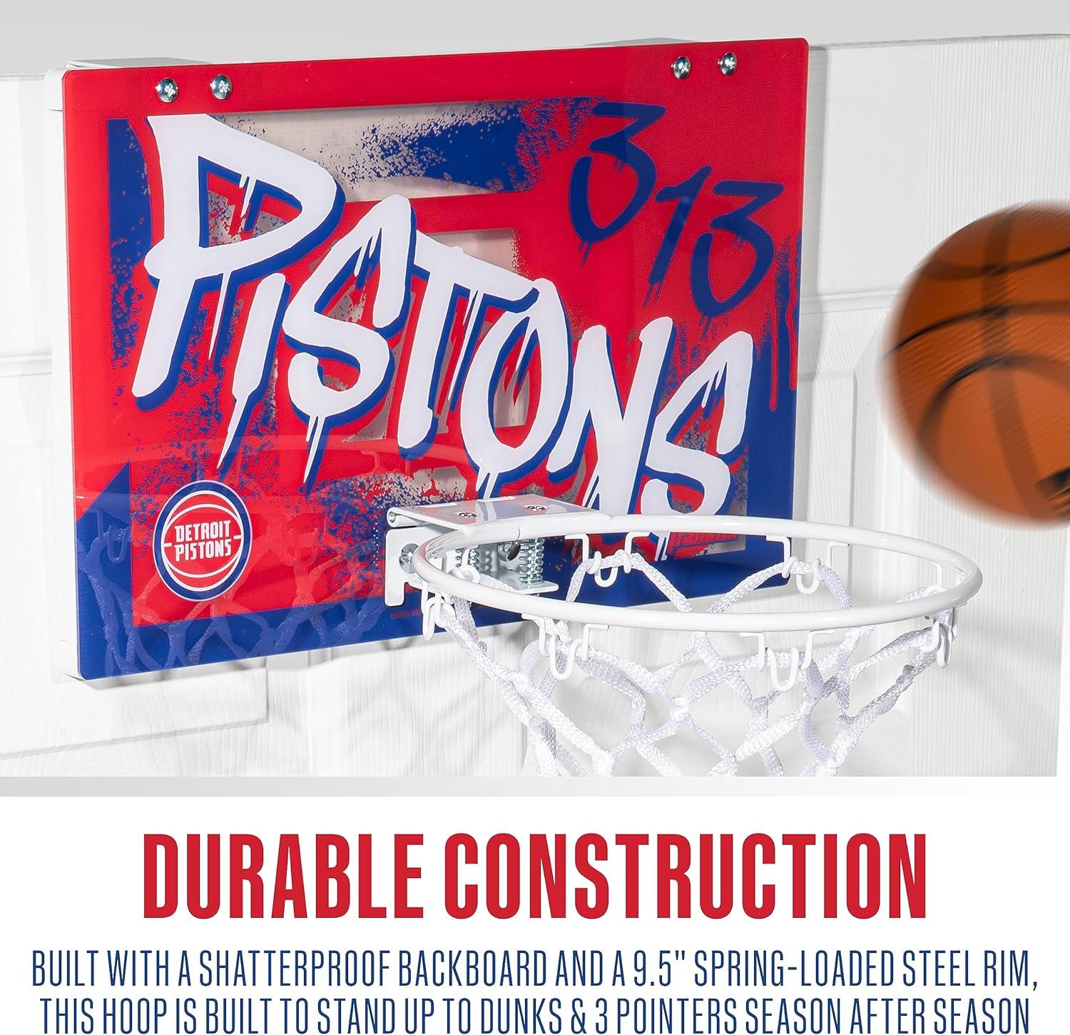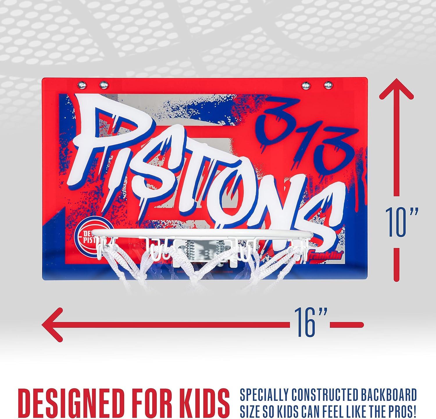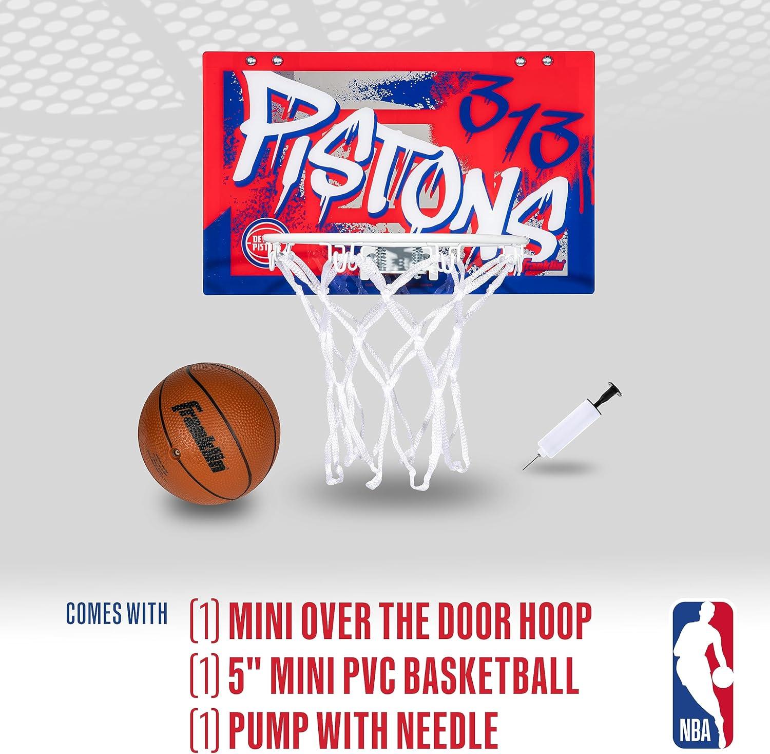 Franklin Sports NBA Team Over the Door Basketball Hoops – Kids Indoor Mini Basketball Hoop + Ball Set – NBA Fan Mini Hoops(Detroit Pistons)