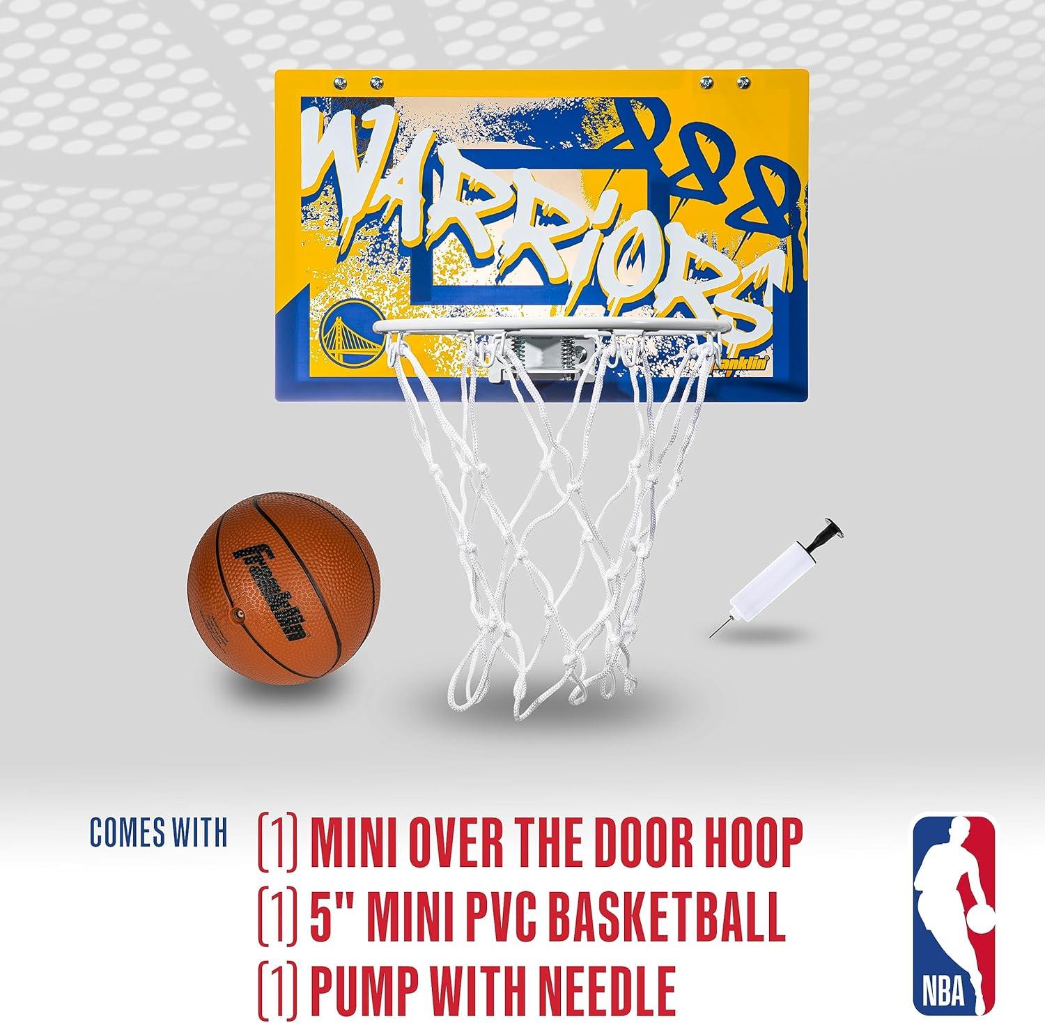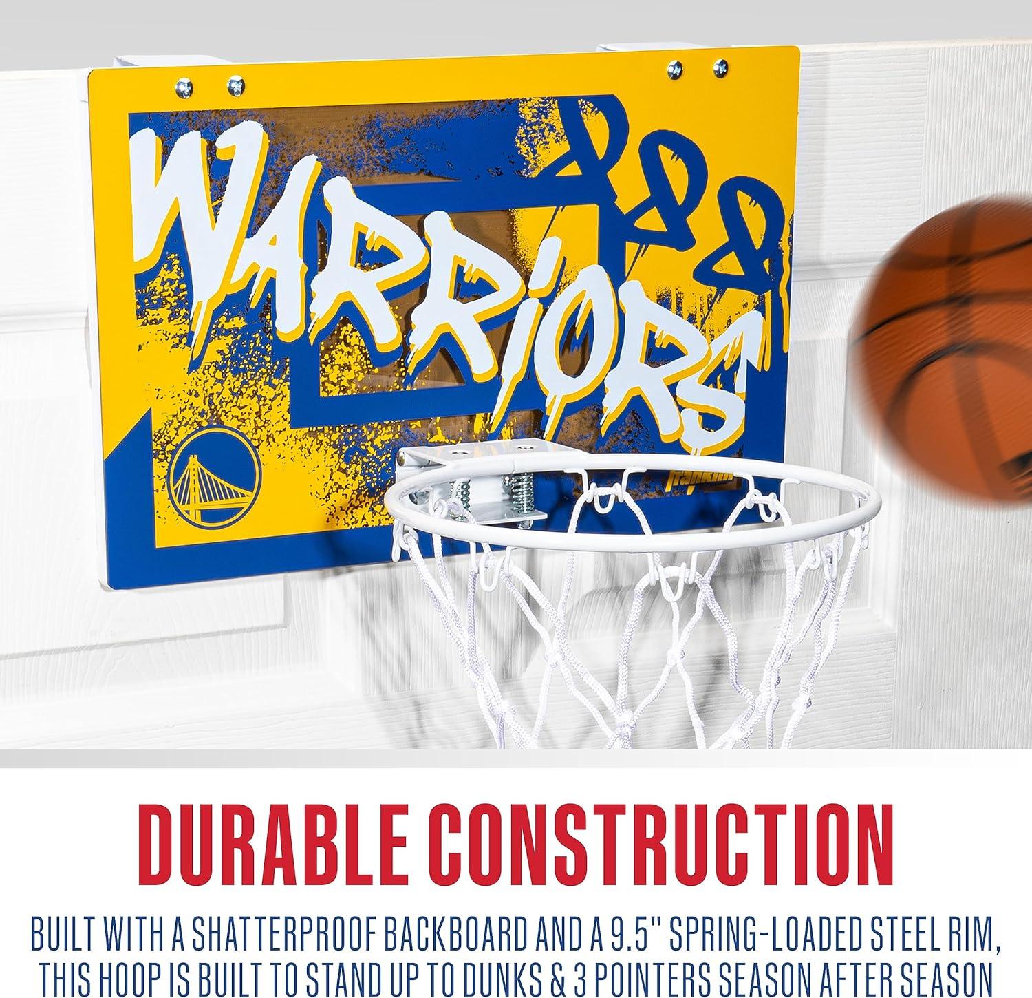Franklin Sports NBA Team Over the Door Basketball Hoops – Kids Indoor Mini Basketball Hoop + Ball Set – NBA Fan Mini Hoops(Golden State Warriors)