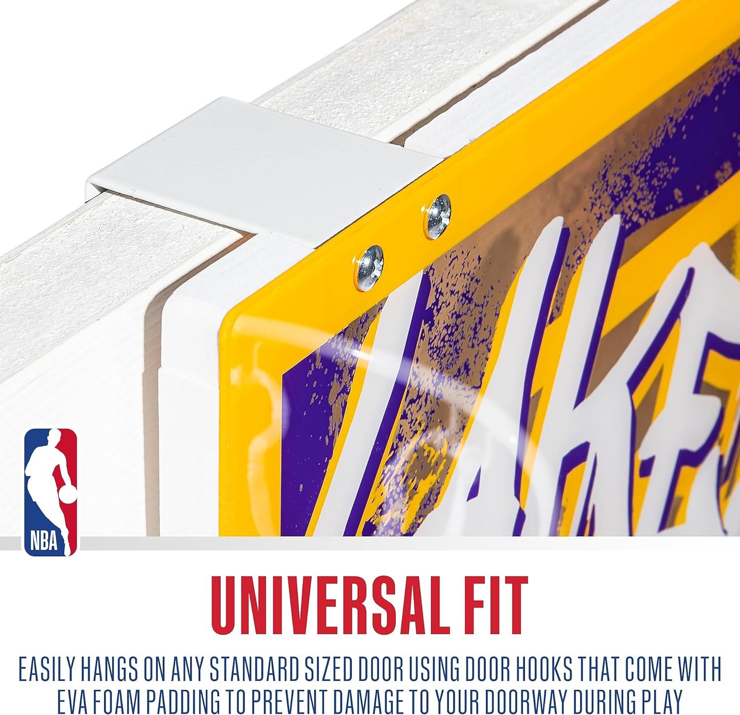FULL SET INCLUDED: This NBA set comes complete with (1) over the door hoop, (1) 5″ mini basketball, and (1) air pump so you have everything you need to get the game started!