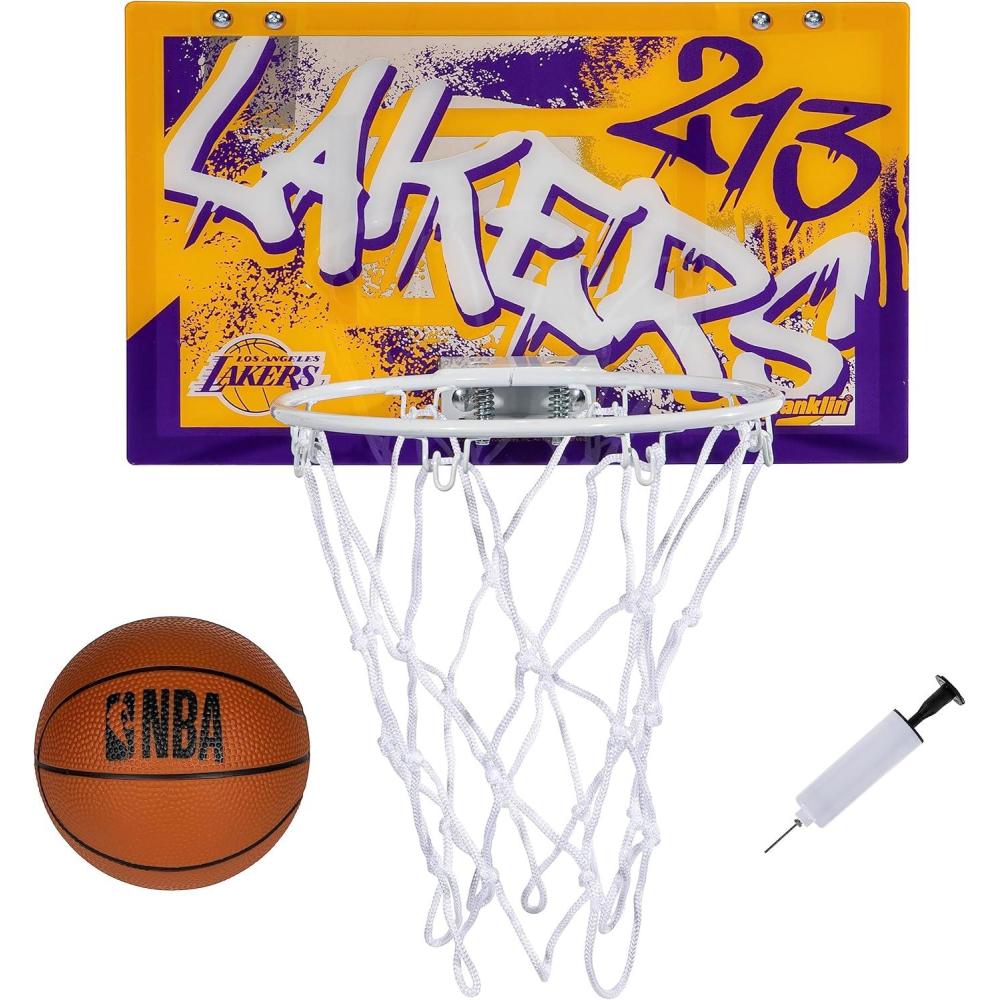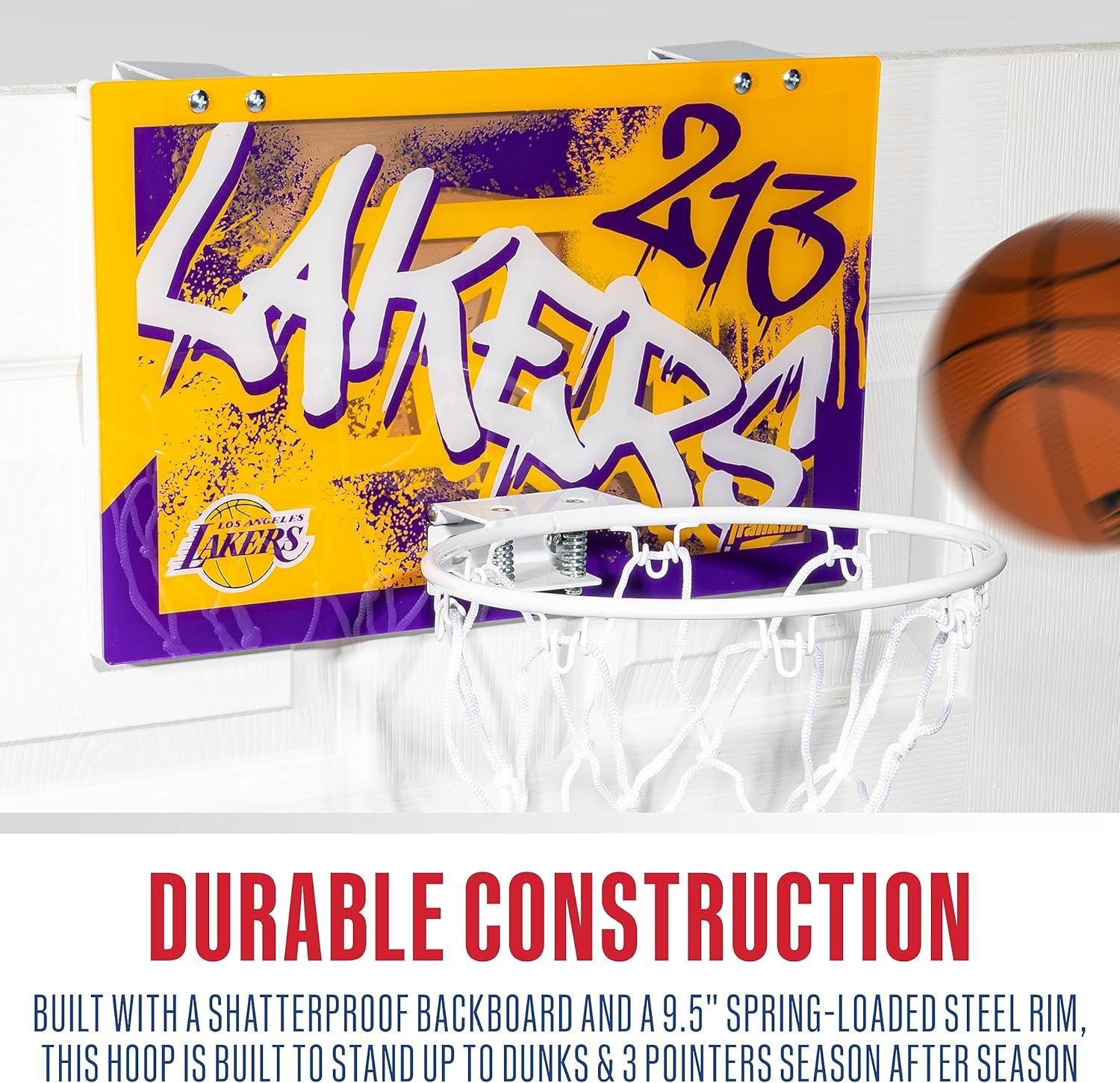 Franklin Sports NBA Team Over the Door Basketball Hoops – Kids Indoor Mini Basketball Hoop + Ball Set – NBA Fan Mini Hoops(Los Angeles Lakers)
