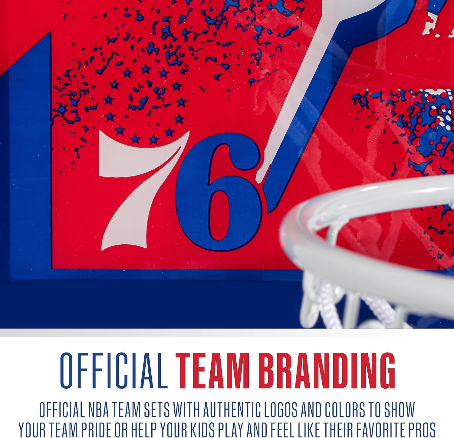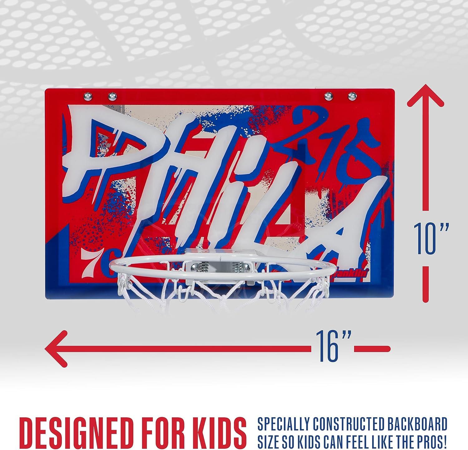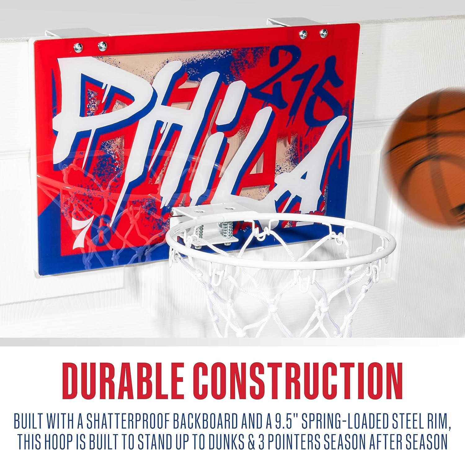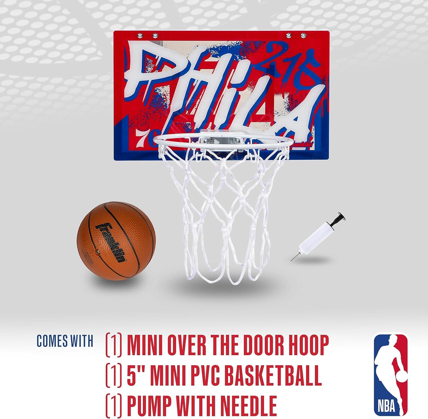 Franklin Sports NBA Team Over the Door Basketball Hoops – Kids Indoor Mini Basketball Hoop + Ball Set – NBA Fan Mini Hoops(Philadelphia 76ers)