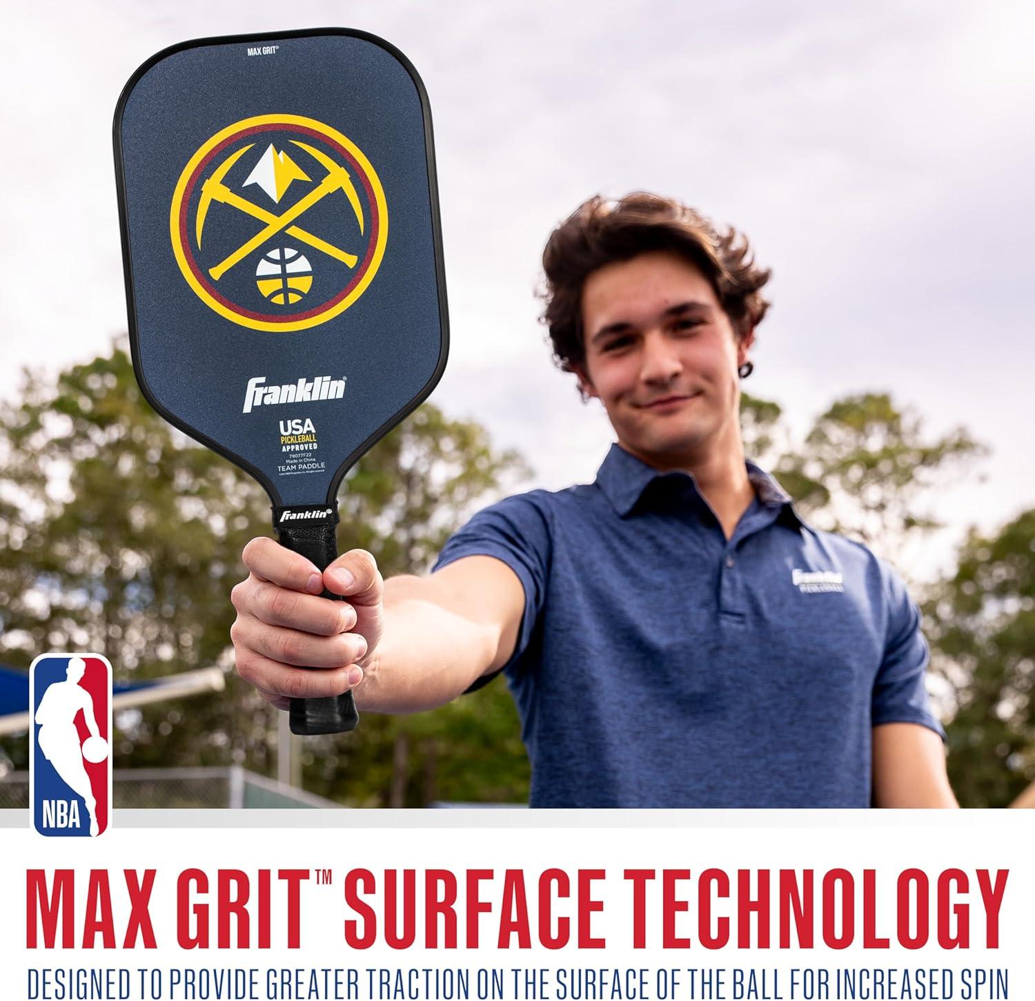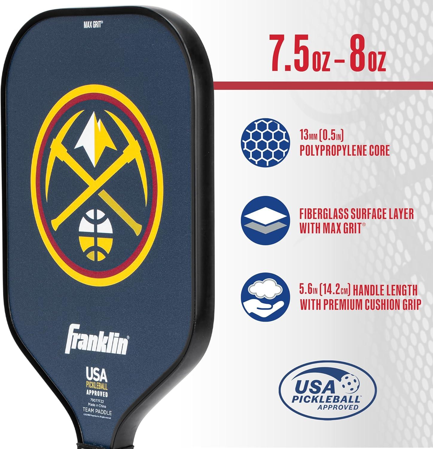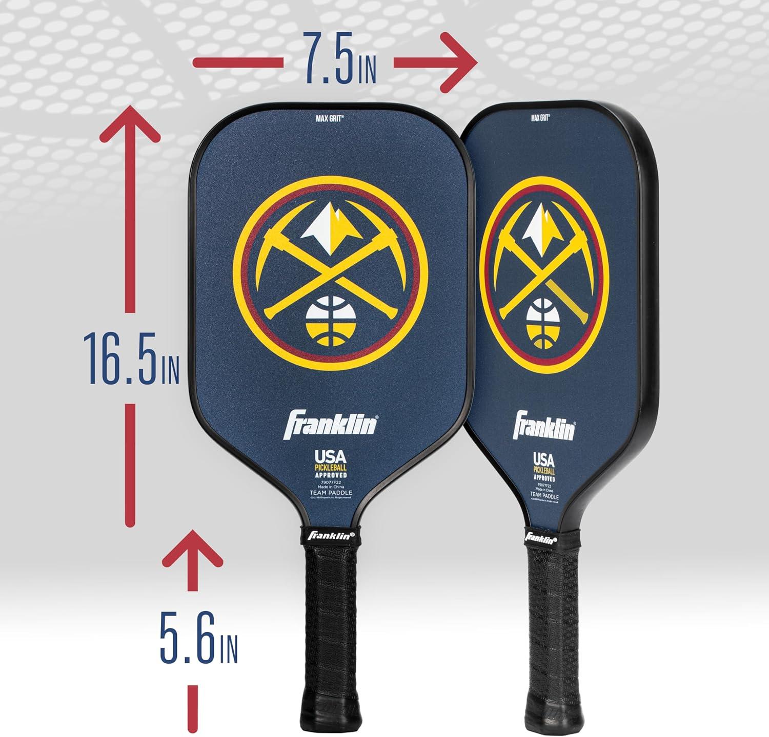 Franklin Sports NBA Team Pickleball Paddles – Official NBA Basketball Team Logo Pickleball Paddles – Signature Series 13MM Pickleball Paddle with MaxGrit – USA Pickleball (USAPA) Approved(Denver Nuggets)