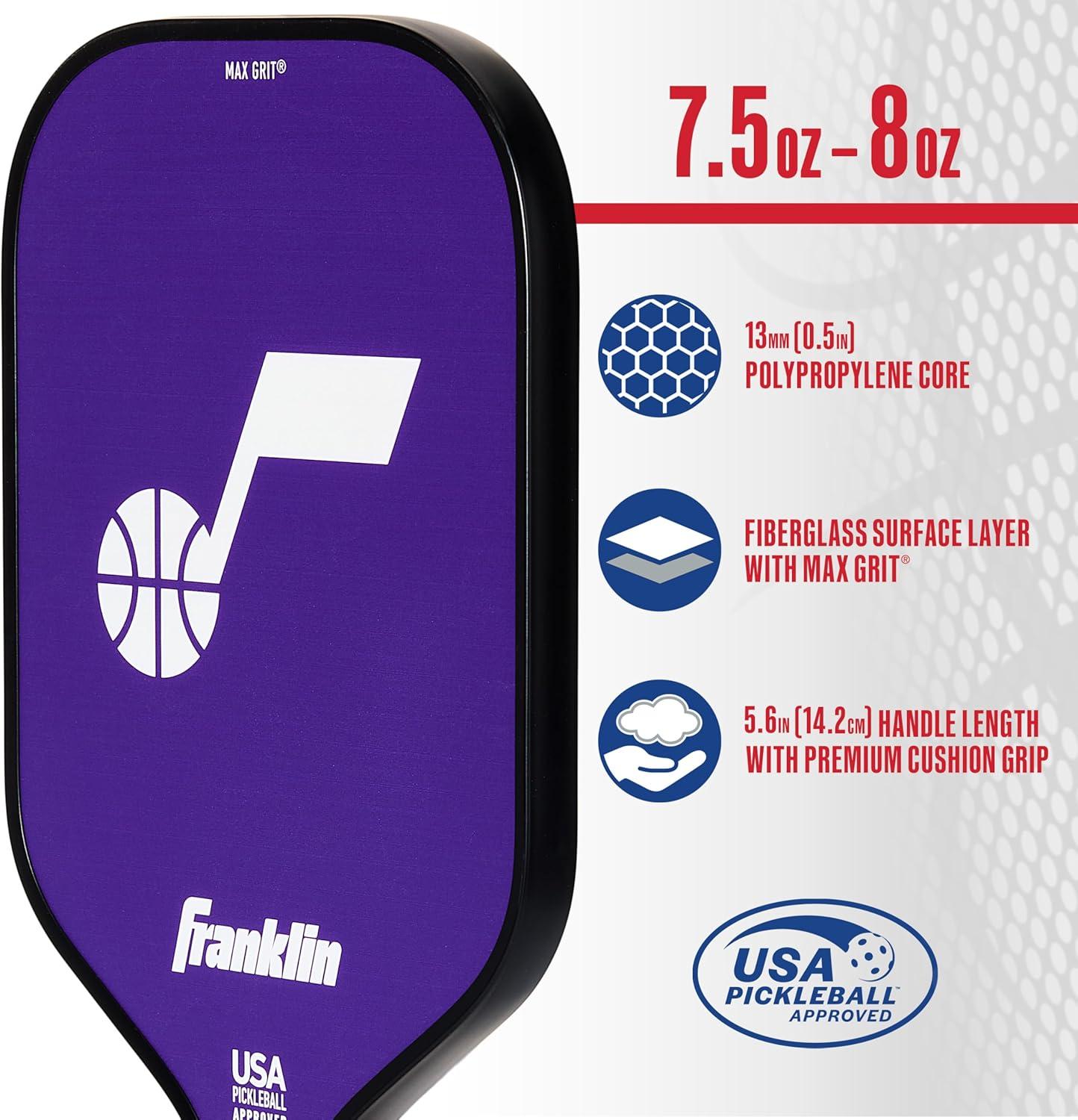 Franklin Sports NBA Team Pickleball Paddles – Official NBA Basketball Team Logo Pickleball Paddles – Signature Series 13MM Pickleball Paddle with MaxGrit – USA Pickleball (USAPA) Approved(Utah Jazz 2)