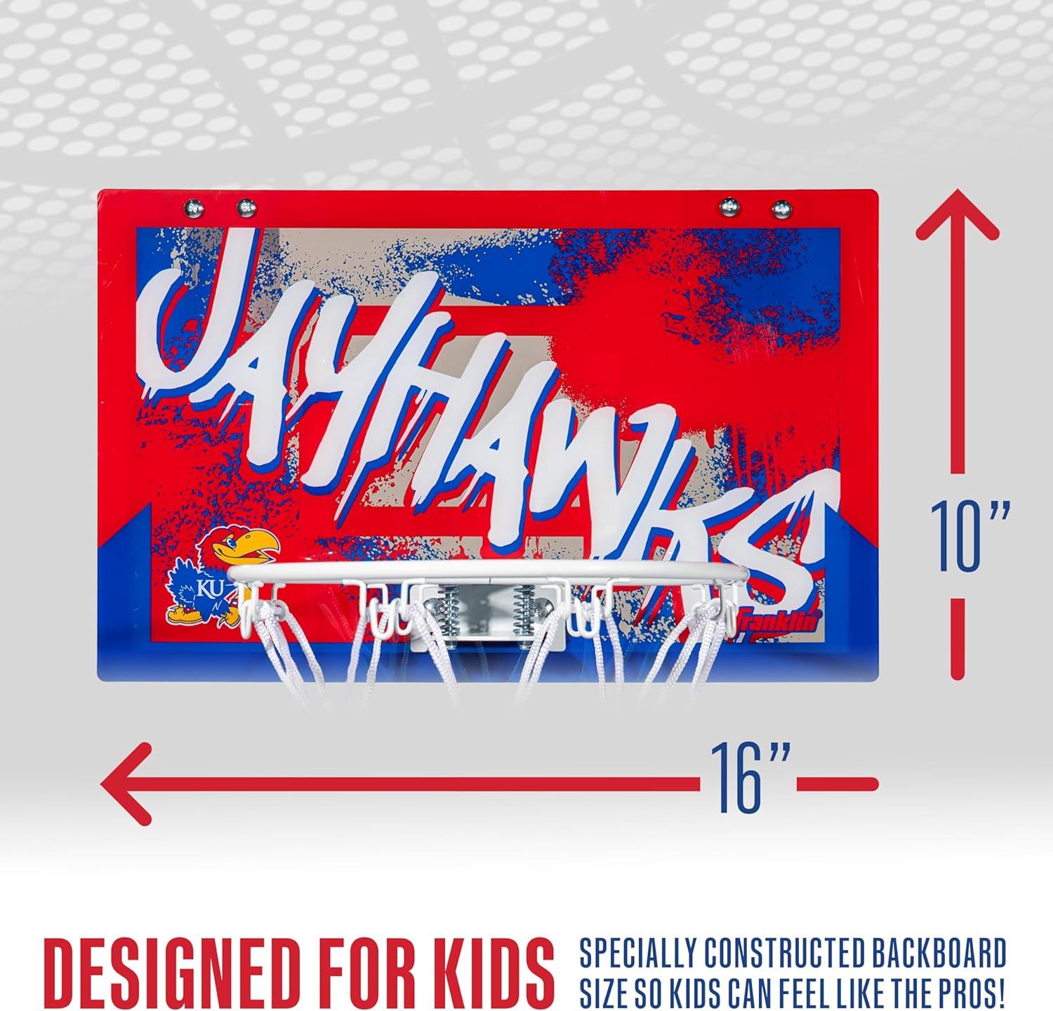 Franklin Sports NCAA Over The Door Basketball Hoop – Kids Indoor Basketball Hoop with Basketball – NCAA Fan Shop Mini Hoop for Bedroom + Office – Over The Door Mini Hoop(Kansas Jayhawks)