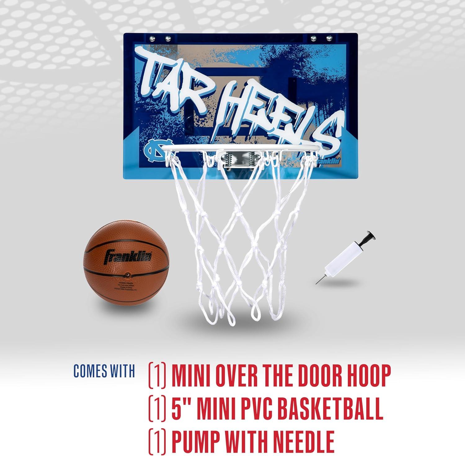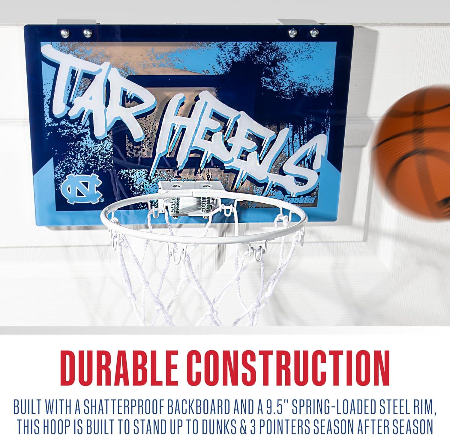 Franklin Sports NCAA Over The Door Basketball Hoop – Kids Indoor Basketball Hoop with Basketball – NCAA Fan Shop Mini Hoop for Bedroom + Office – Over The Door Mini Hoop(North Carolina Tarheels)