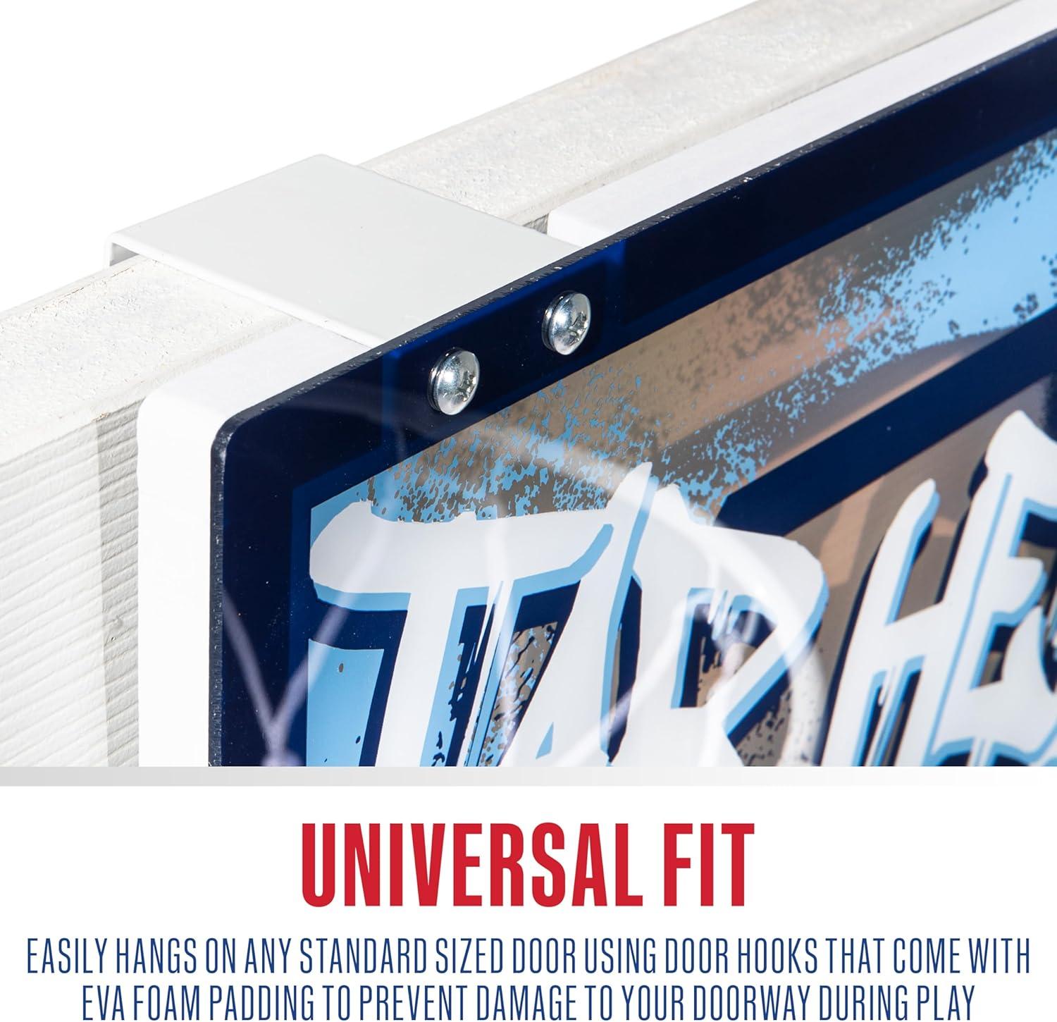 UNIVERSAL FIT: This hoop assembles in no time and easily hangs on any standard sized door using door hooks that come with EVA foam padding to prevent damage to your doorway during play