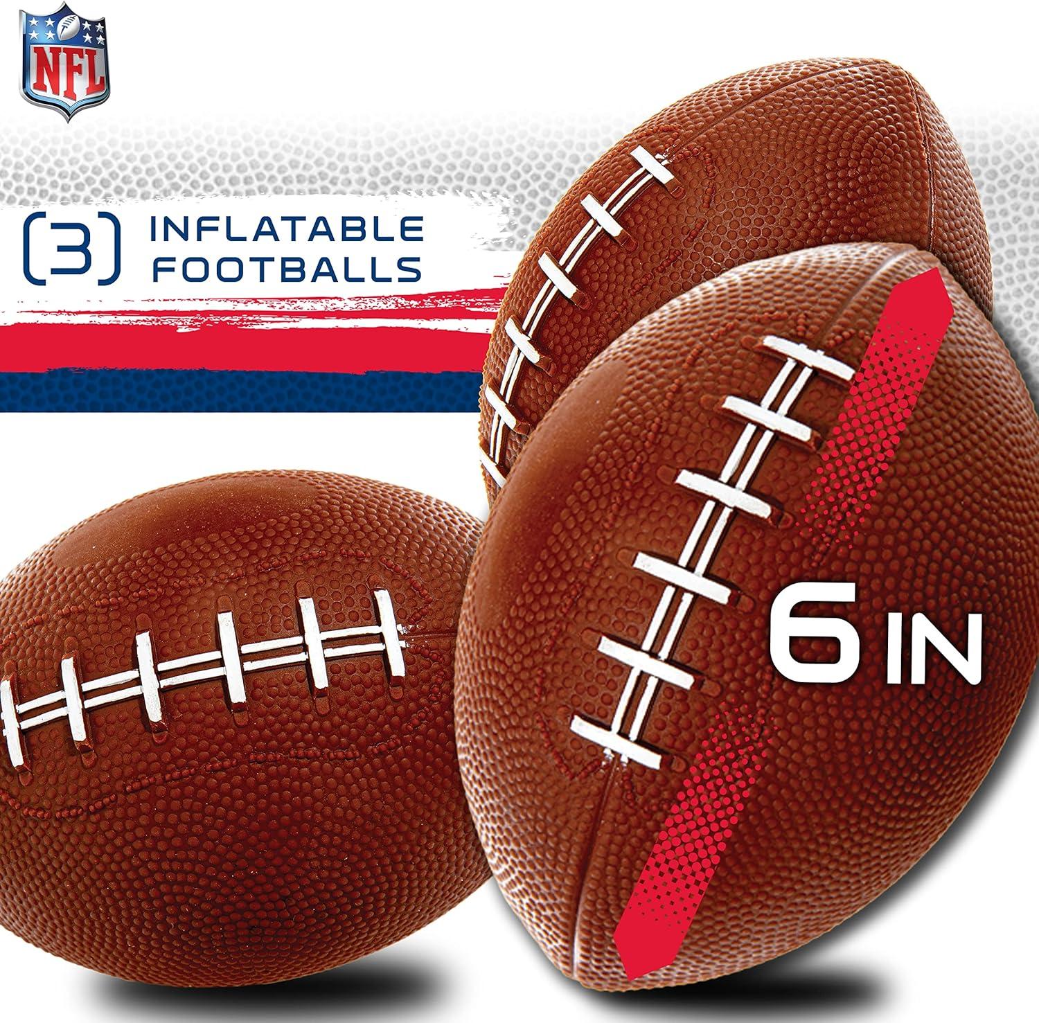 FULL GAME SET: This mini football game set comes with (1) 33″ NFL electronic football target, (3) 6″ PVC mini footballs, and (1) air pump with inflation needle so you have everything you need to play! Requires (3) AAA batteries (not included)
