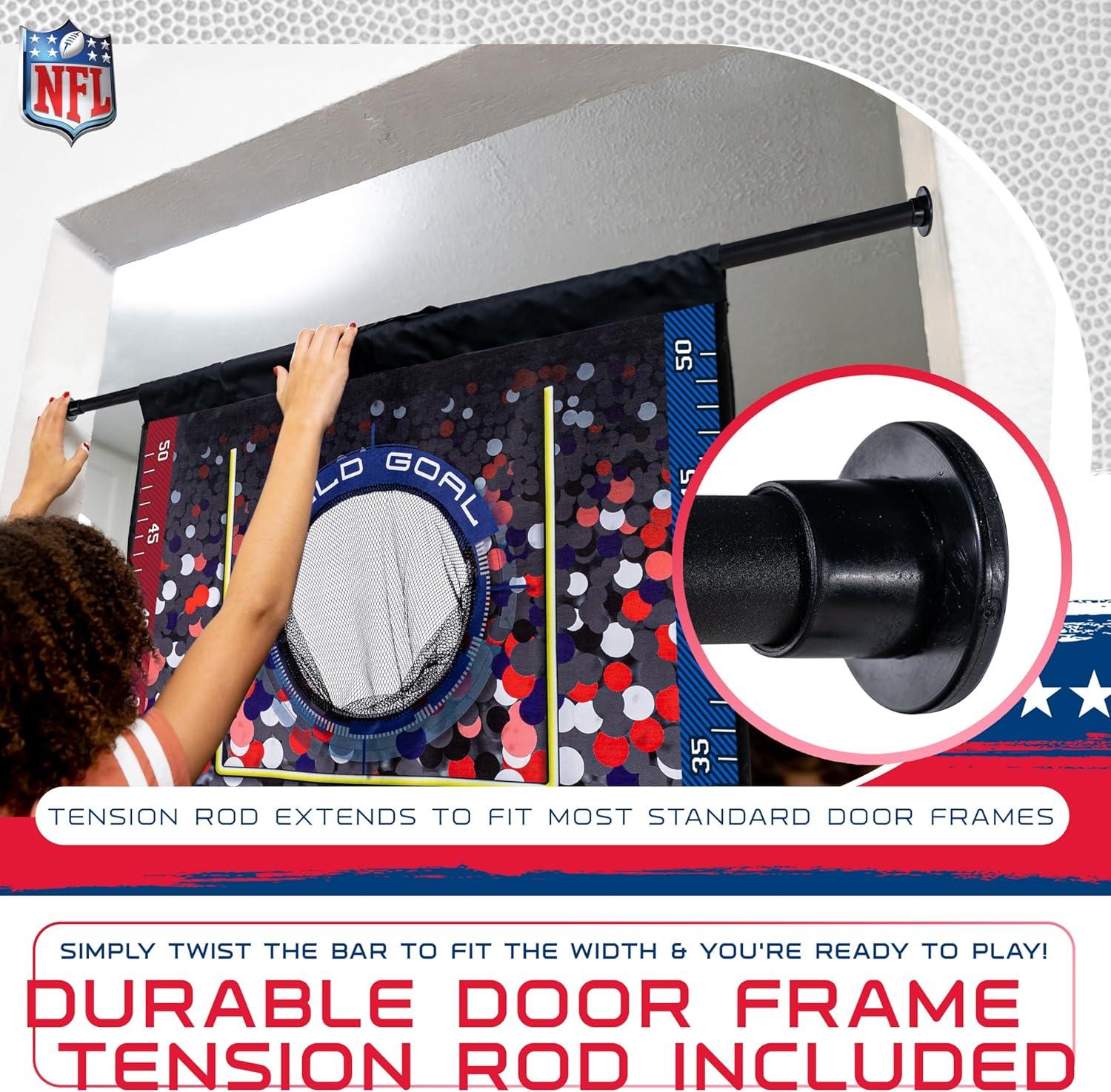 Franklin Sports NFL Mini Football Toss Target Game – NFL Door Jam Football Over The Door Target + (4) Mini Balls Set – 3 Hole Throwing Game for All Ages – Practice Passing + Aim