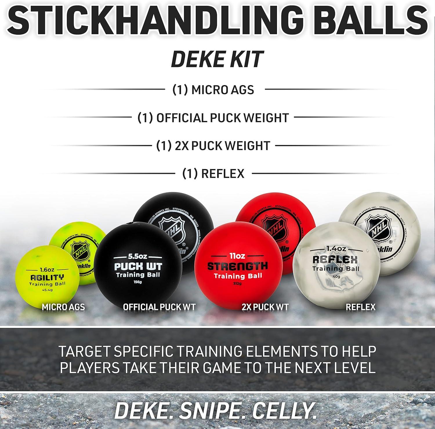 Franklin Sports NHL Hockey Stick Handling Balls – (4) Hockey Training Aids for Stick Handling + Hands Practice – On + Off Ice Equipment – Weighted + Mini Balls for Speed Training
