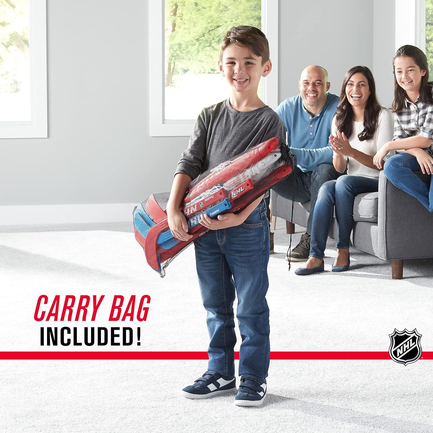 ON-THE-GO PLAY: Easy to set up and disassemble, this kids’ hockey set comes with its own carrying bag, so it’s great for sleepovers, camping and more