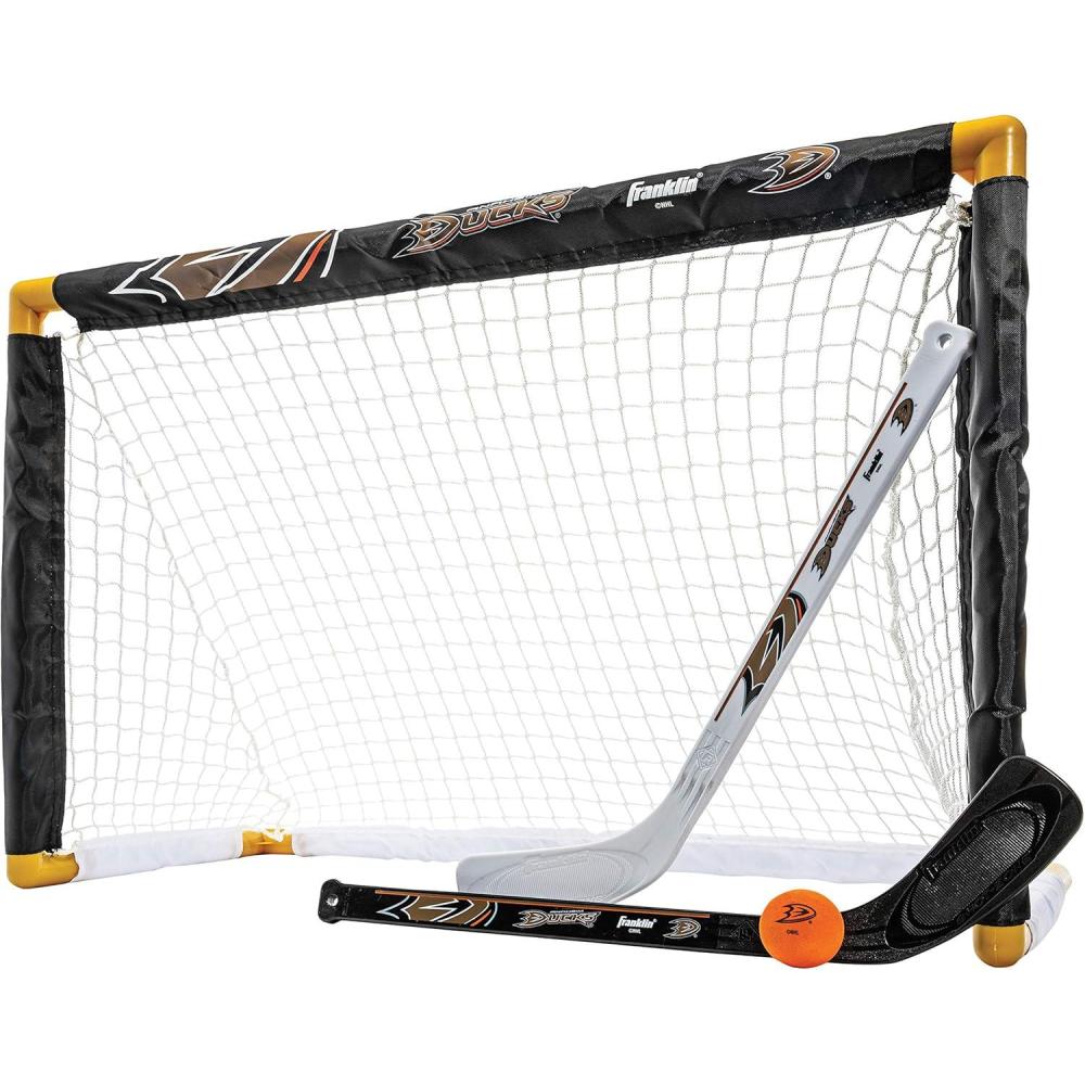 Franklin Sports NHL Mini Hockey Set – Kids Indoor Knee Hockey Goal, Ball, + 2 Stick Combo – Youth Team Indoor Toy Set – Official – Ages 3+(Anaheim Ducks)