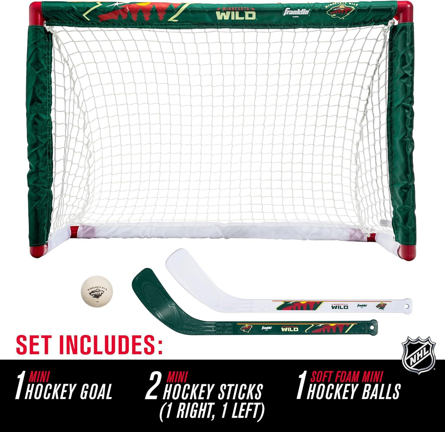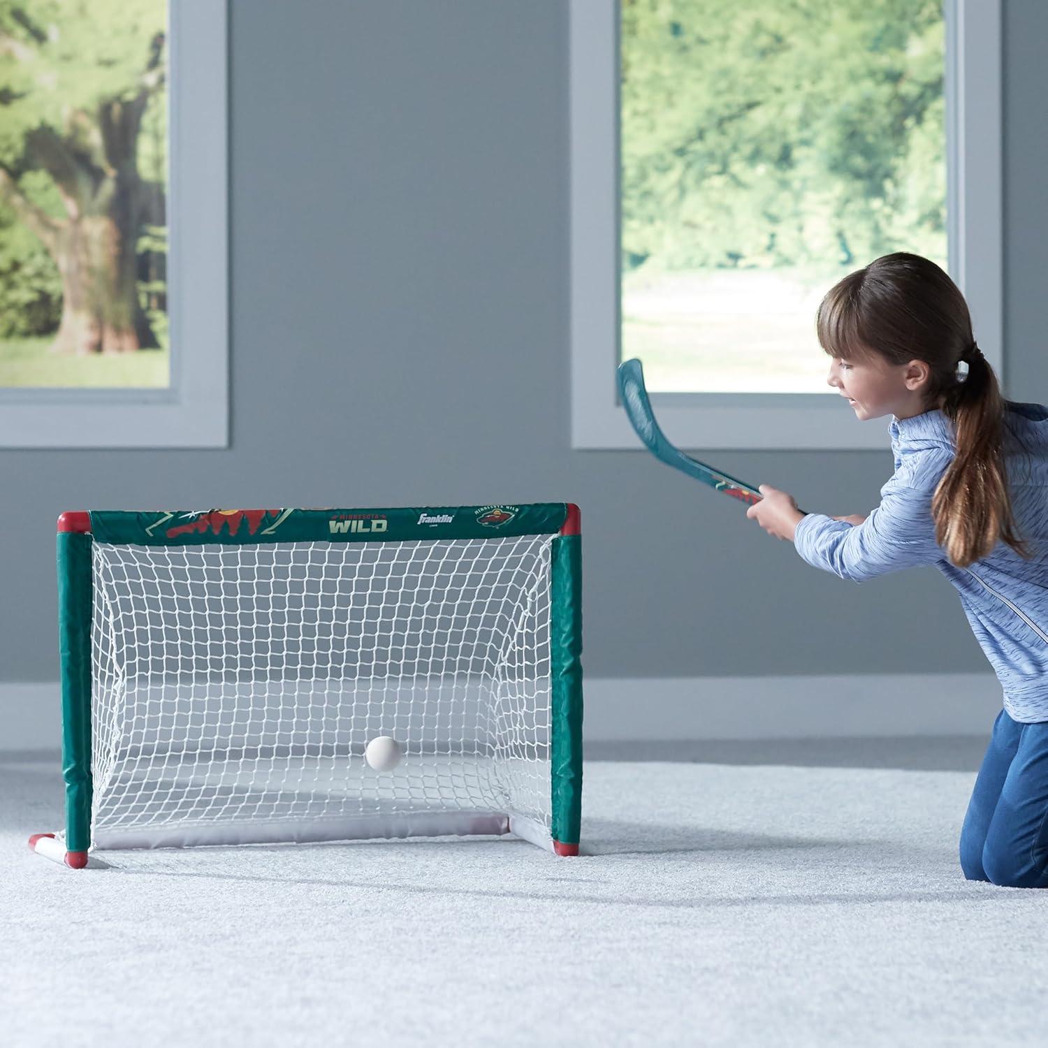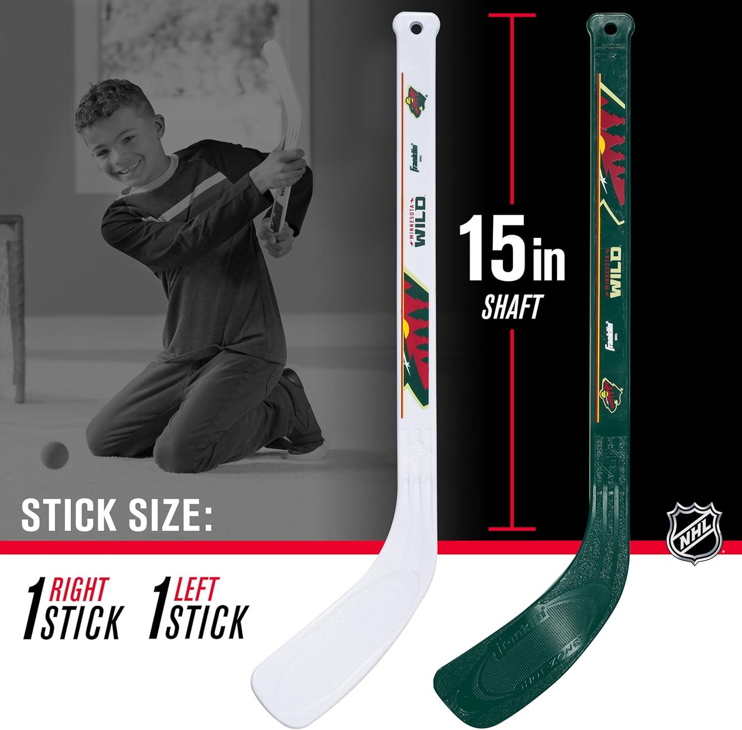 Franklin Sports NHL Mini Hockey Set – Kids Indoor Knee Hockey Goal, Ball, + 2 Stick Combo – Youth Team Indoor Toy Set – Official – Ages 3+(Minnesota Wild)