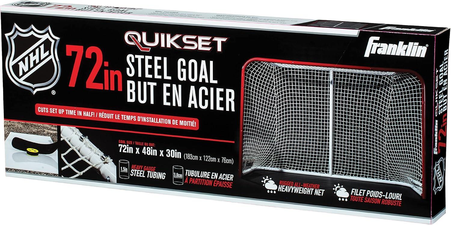 The Quickset hockey goal features the quality and durability you've come to expect with Franklin's NHL steel goals, but sets up in a fraction of the time! the exclusive Quickset lock down system eliminates the time and frustration of conventional rope tie assemblies. As a bonus, each goal comes complete with a shooting board to refine your skills on any surface.