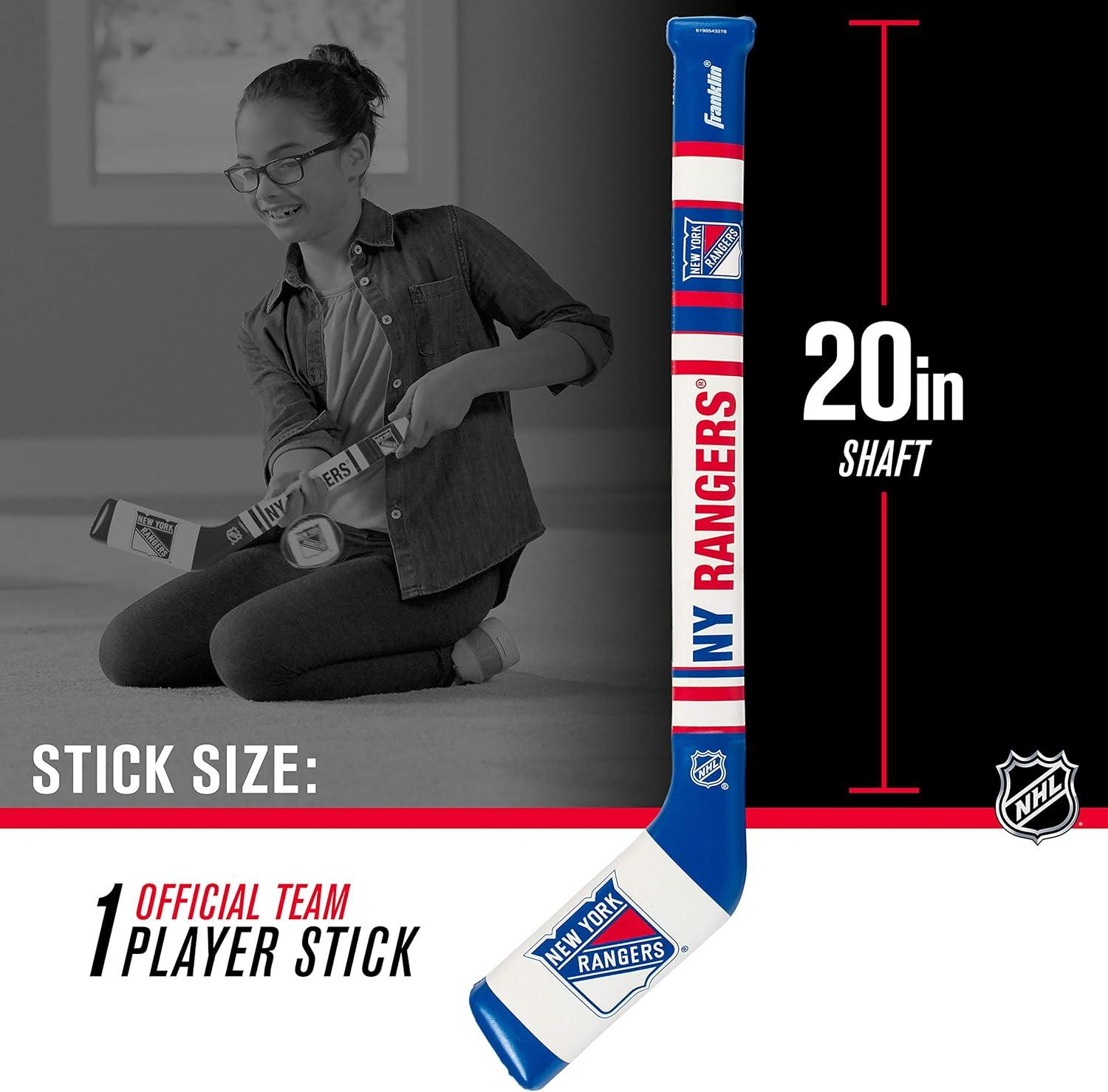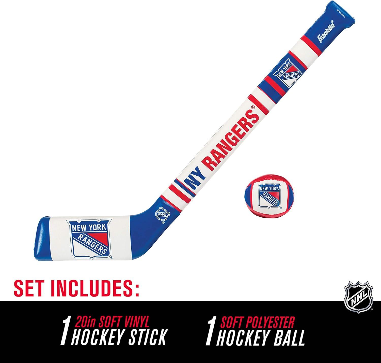 Franklin Sports NHL Team Mini Soft Hockey Stick Set – NHL Team Soft Foam Mini Hockey Stick and Ball – Great Toy for Kids(New York Rangers)