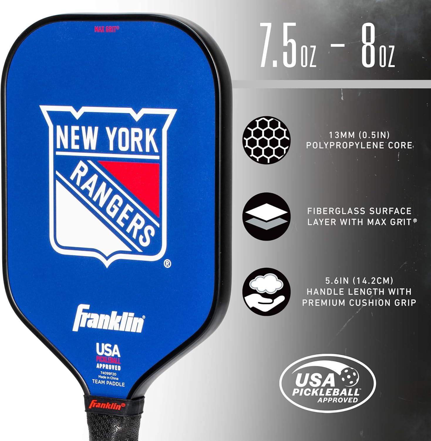 Franklin Sports NHL Team Pickleball Paddles – Official NHL Hockey Team Logo Pickleball Paddles – Signature Series 13MM Pickleball Paddle with MaxGrit – USA Pickleball (USAPA) Approved(New York Rangers)