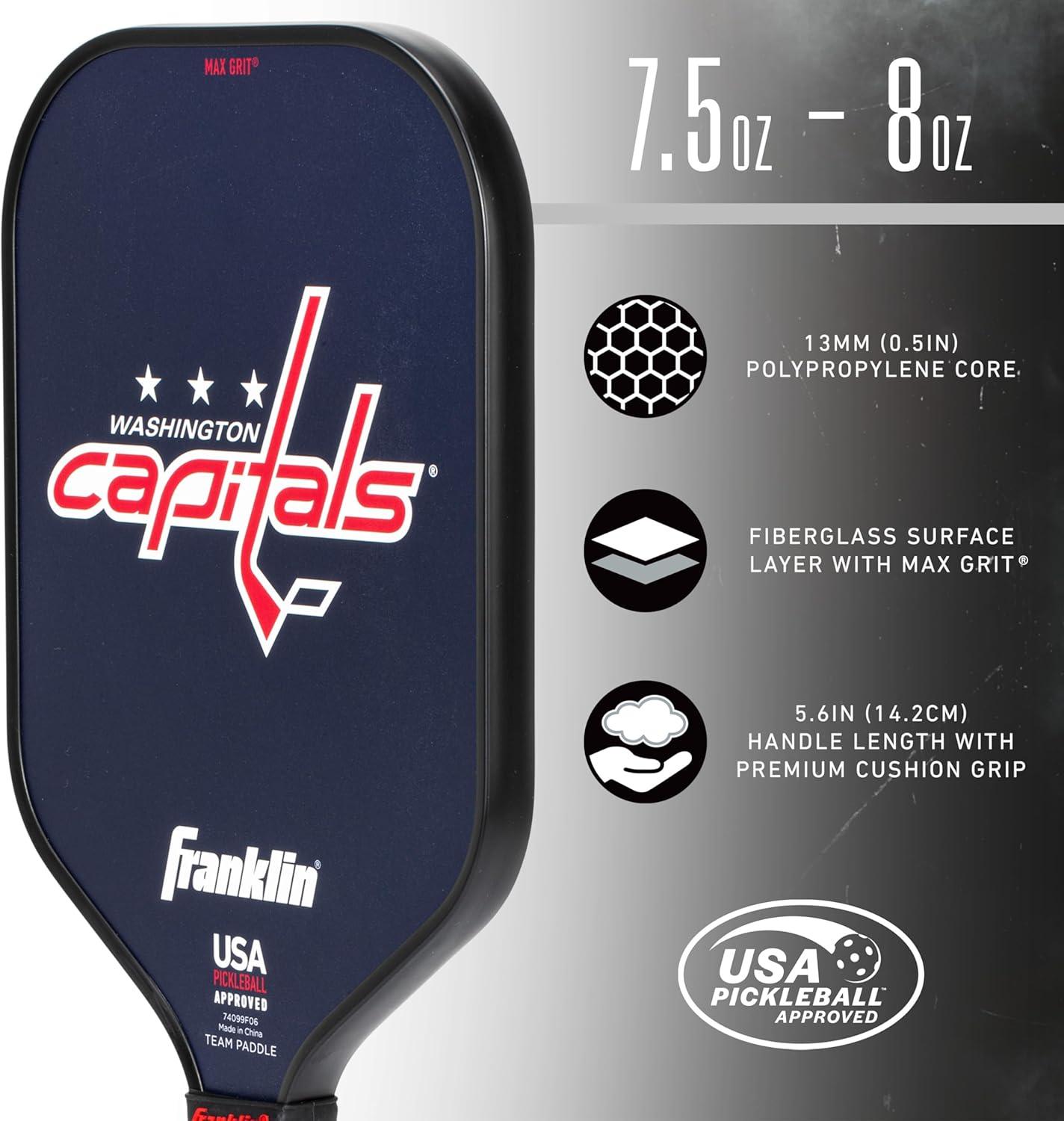 Franklin Sports NHL Team Pickleball Paddles – Official NHL Hockey Team Logo Pickleball Paddles – Signature Series 13MM Pickleball Paddle with MaxGrit – USA Pickleball (USAPA) Approved(Washington Capitals)