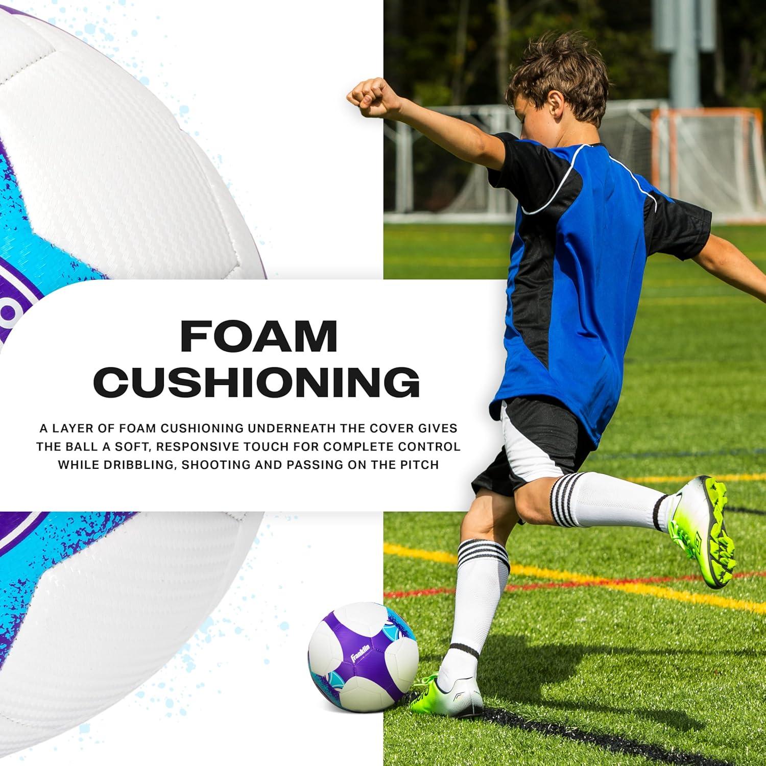 FOAM CUSHIONING: A layer of foam cushioning underneath the cover gives the ball a soft, responsive touch for complete control while dribbling, shooting and passing on the pitch