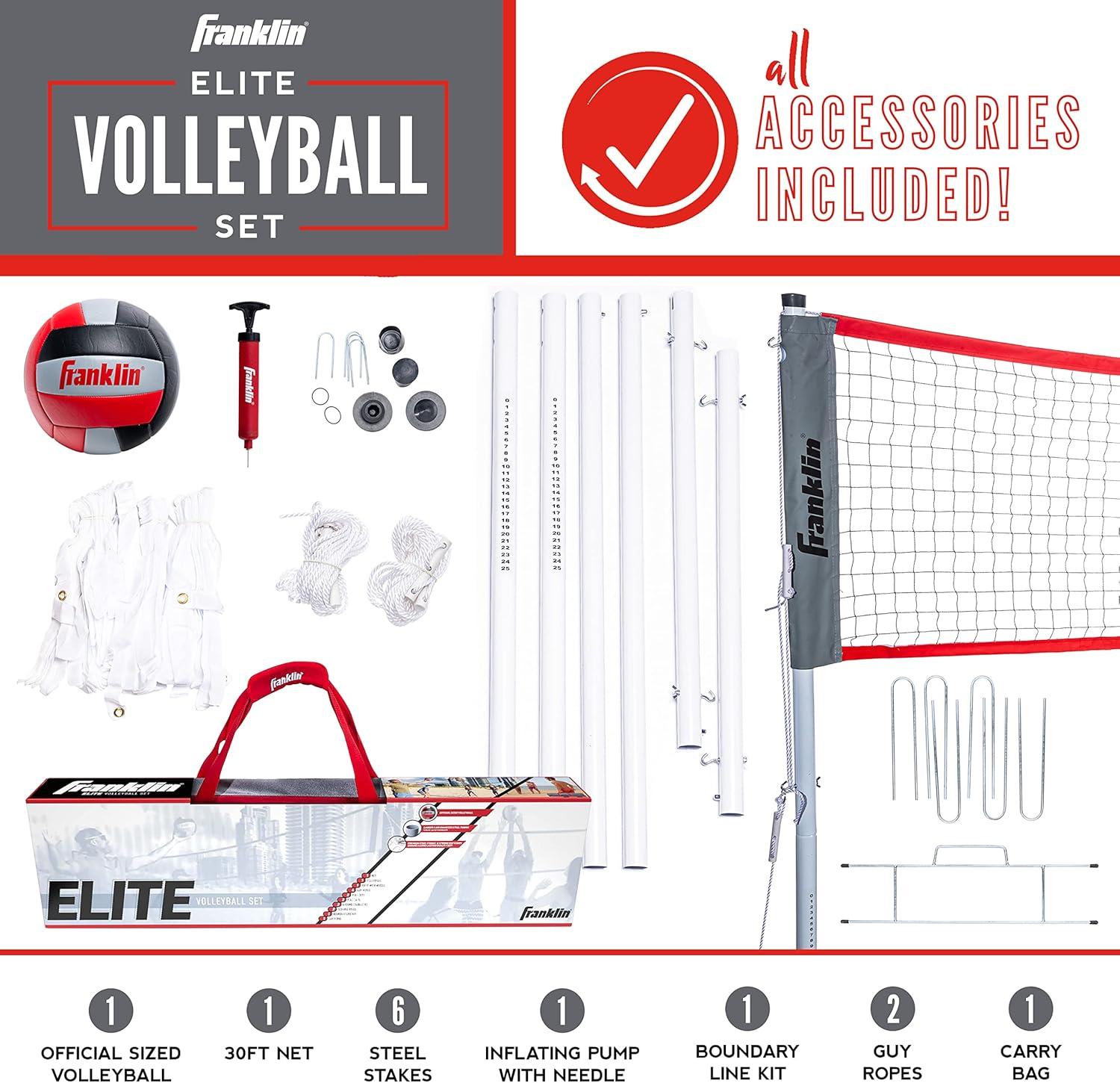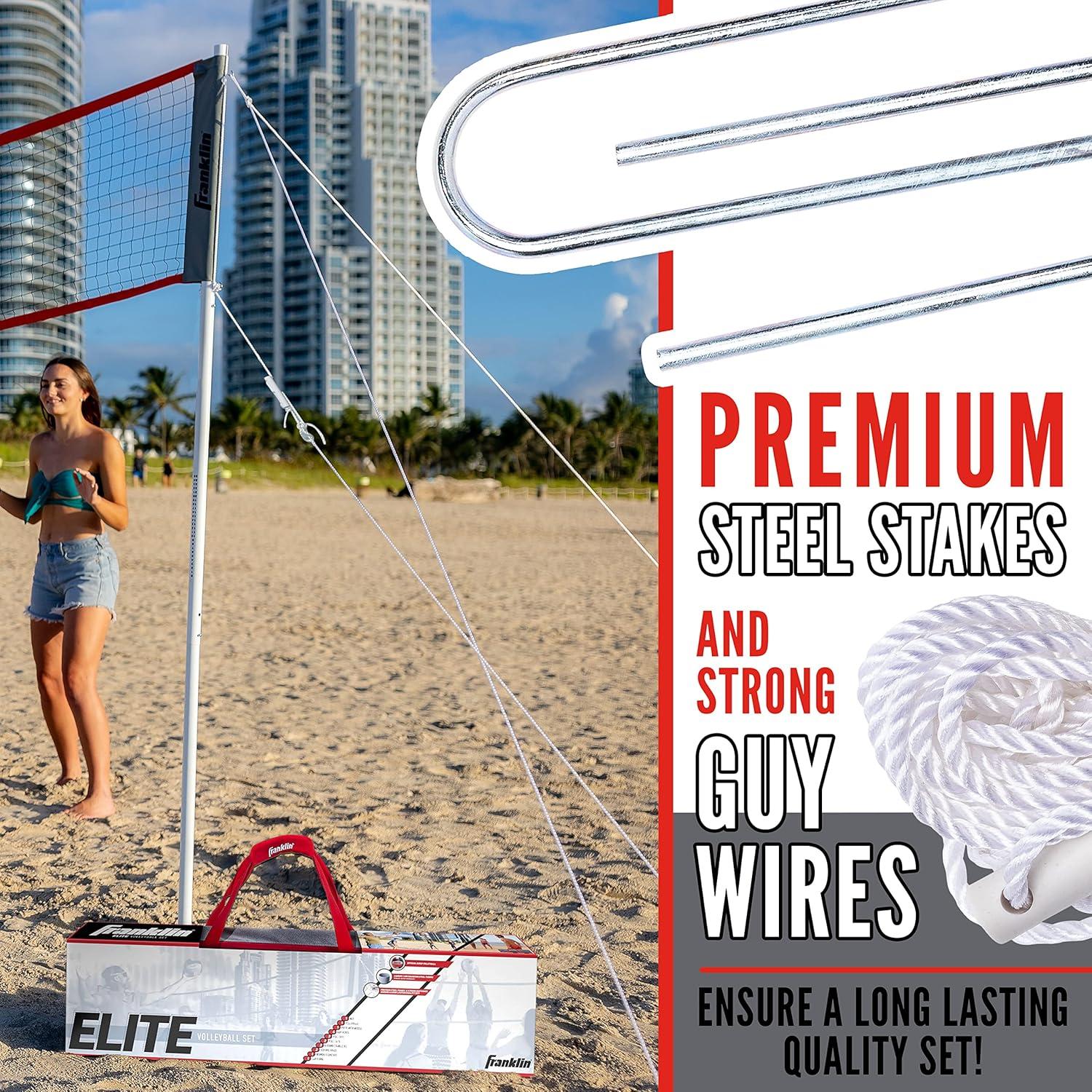 Franklin Sports Outdoor Volleyball Net Sets – Beach + Backyard Portable Volleyball Net with Poles – Complete Outdoor Volleyball Sets with Net + Volleyball Included(Elite)
