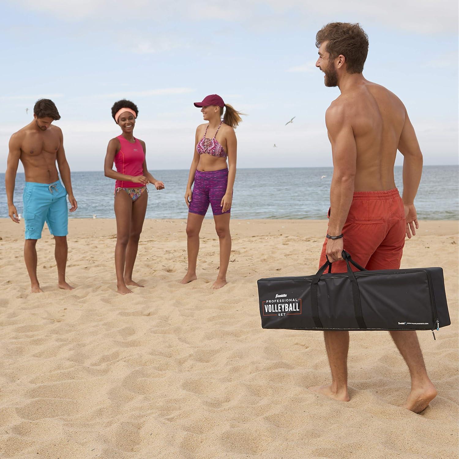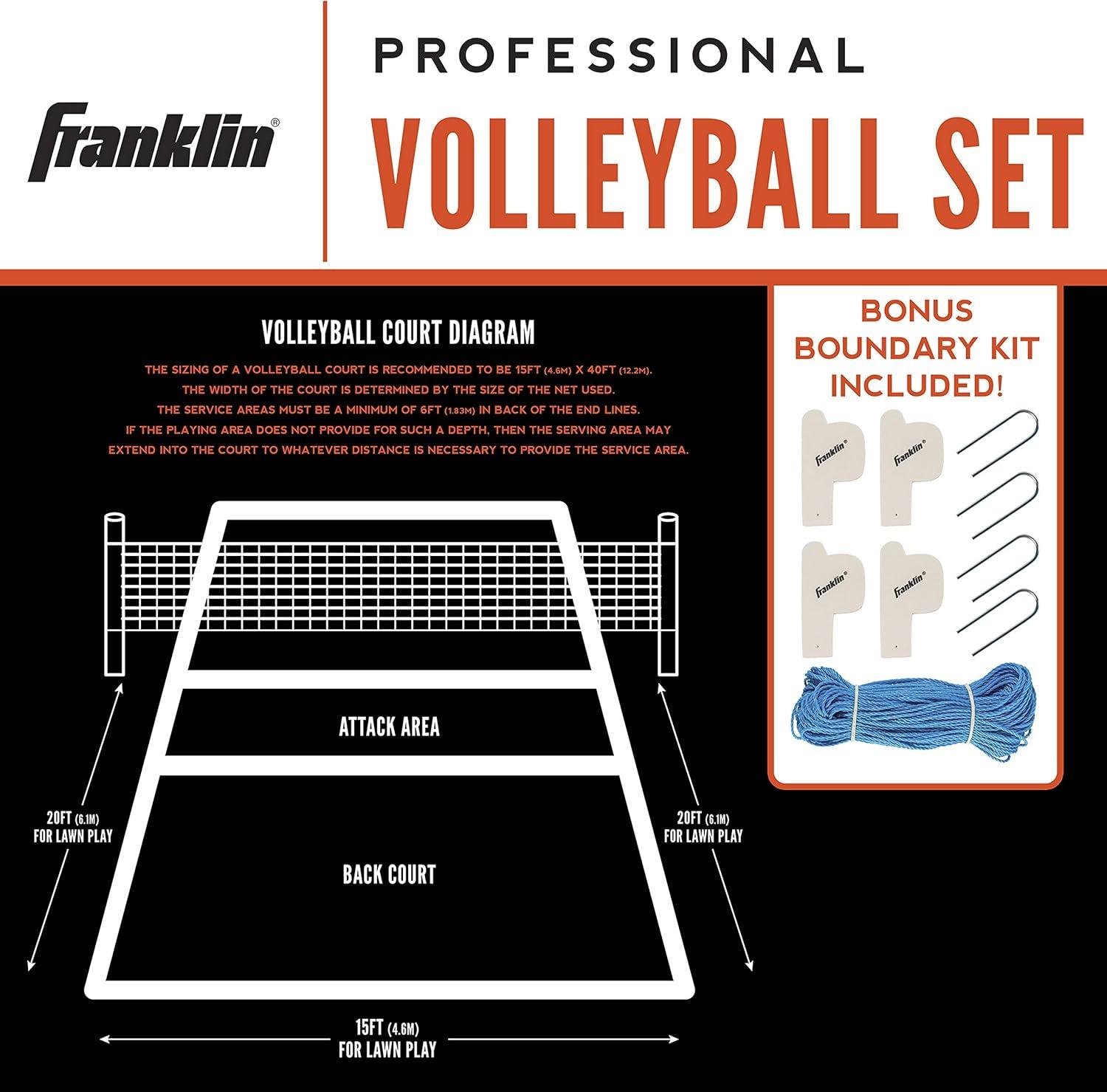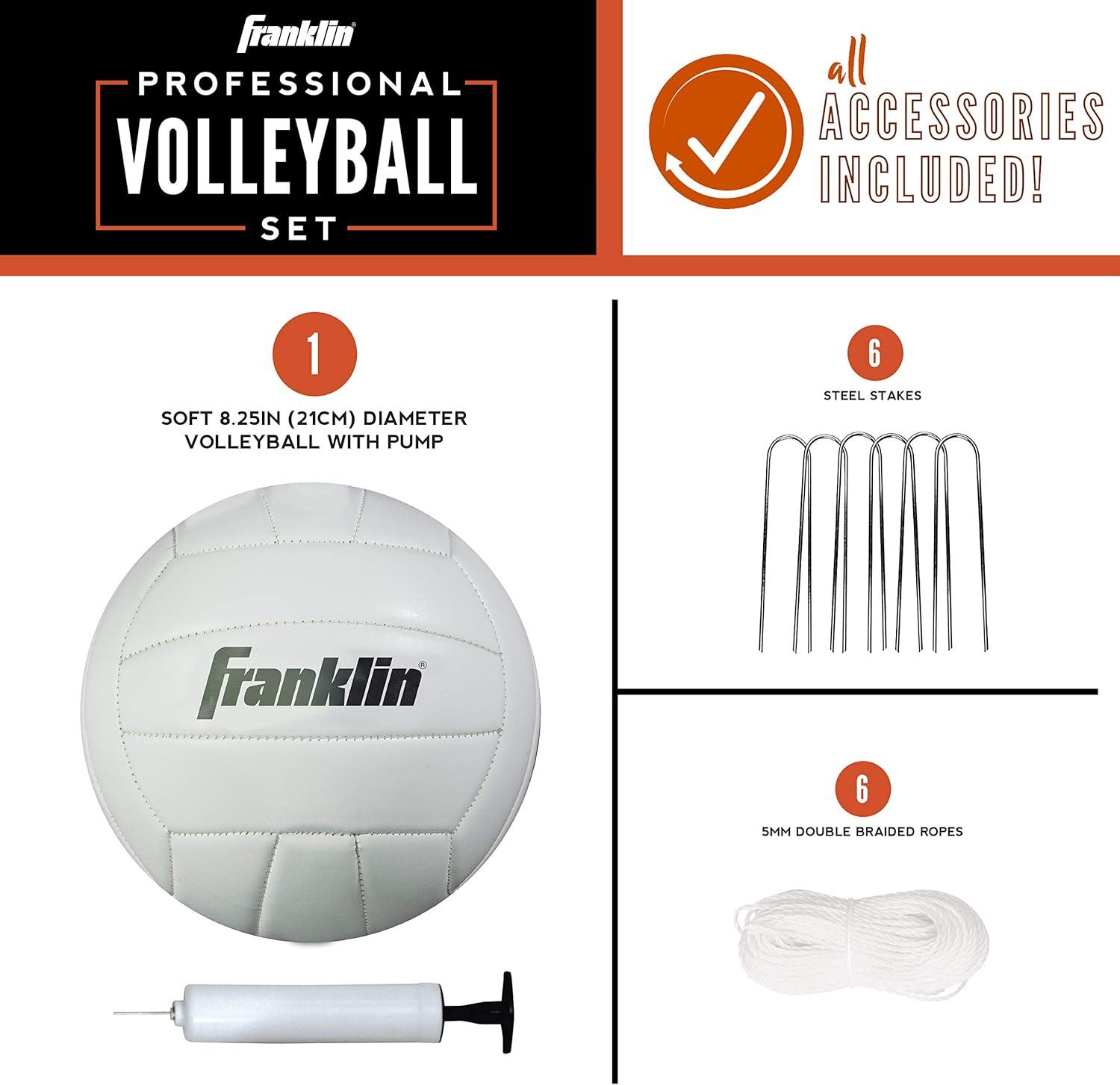 Franklin Sports Outdoor Volleyball Net Sets – Beach + Backyard Portable Volleyball Net with Poles – Complete Outdoor Volleyball Sets with Net + Volleyball Included(Professional)