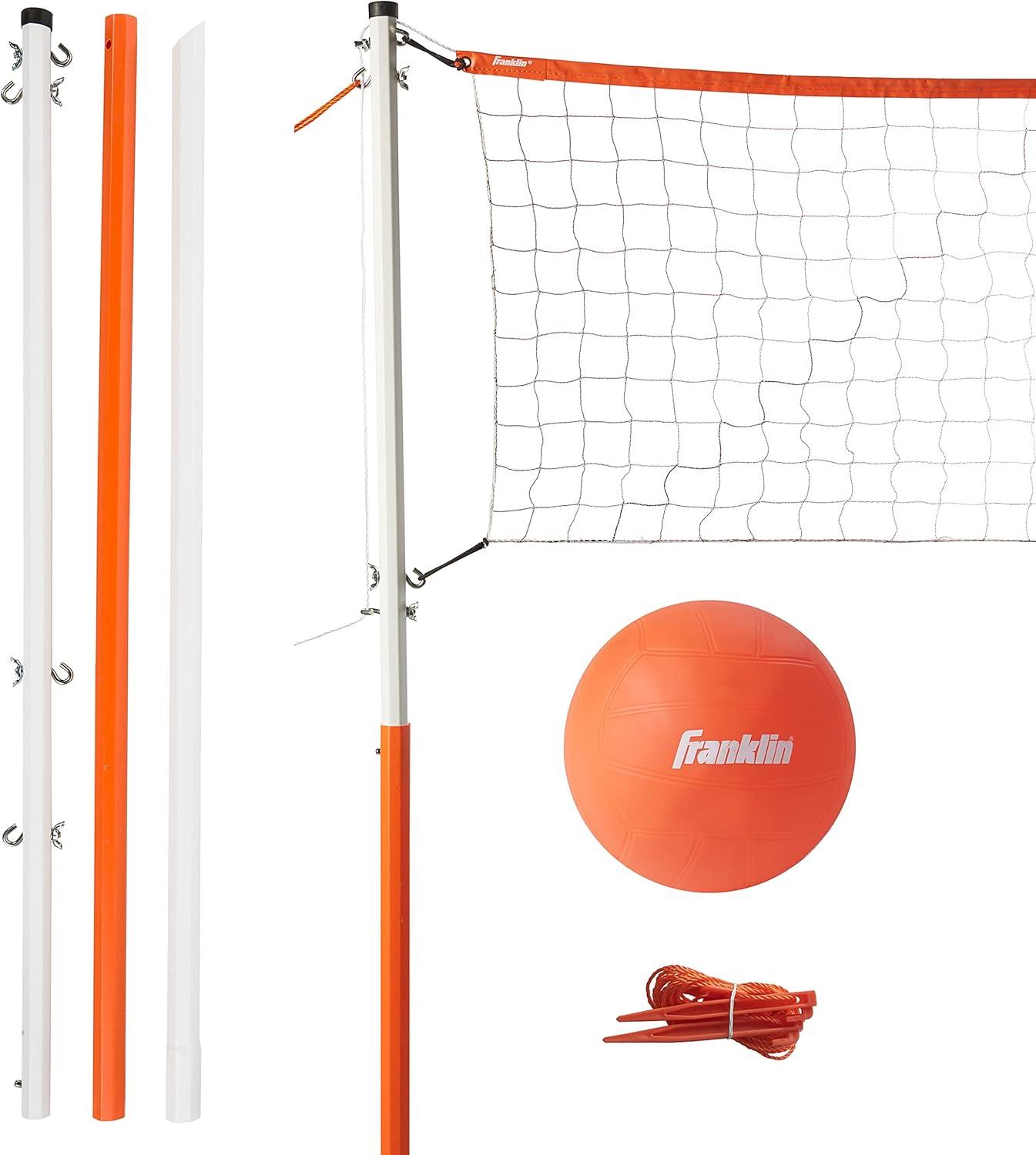 Franklin Sports Outdoor Volleyball Net Sets – Beach + Backyard Portable Volleyball Net with Poles – Complete Outdoor Volleyball Sets with Net + Volleyball Included(Starter)