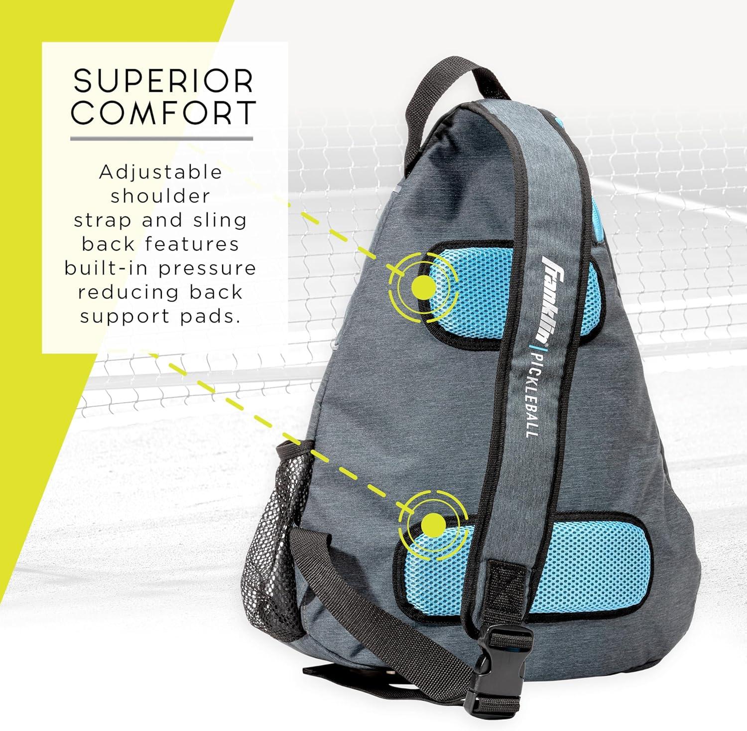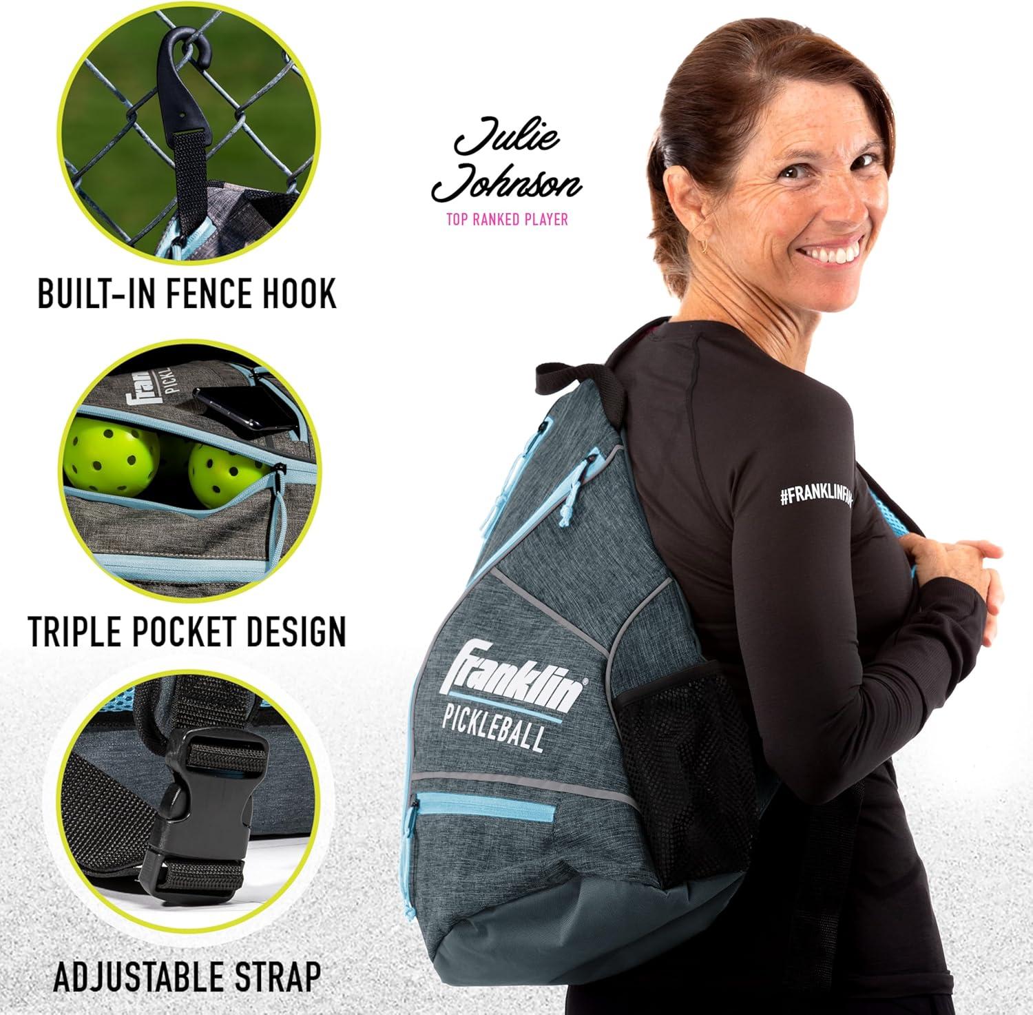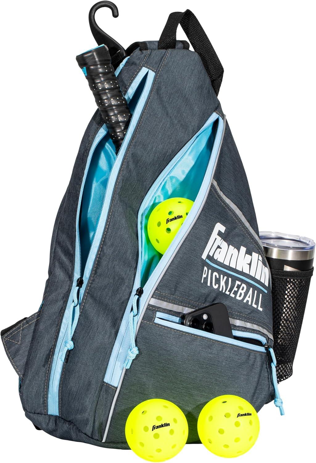 Franklin Sports Pickleball Bags – Sling Bag Backpack for Gear + Equipment – Men + Women – Holds Paddles, Balls + Accessories(Gray/Blue)