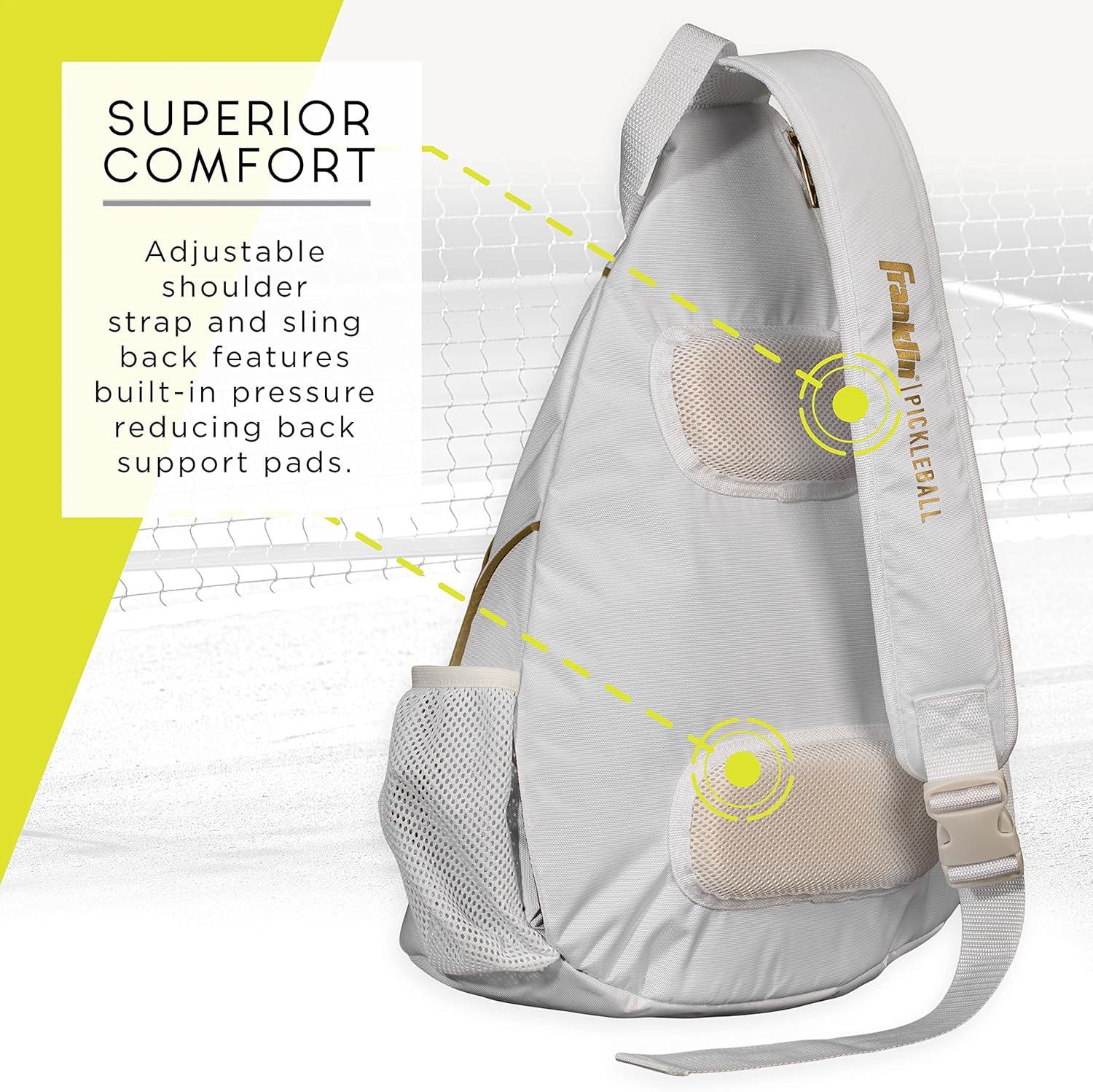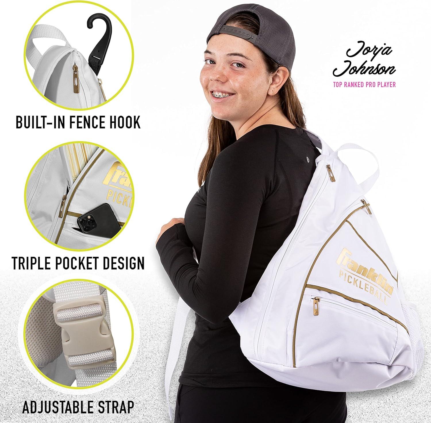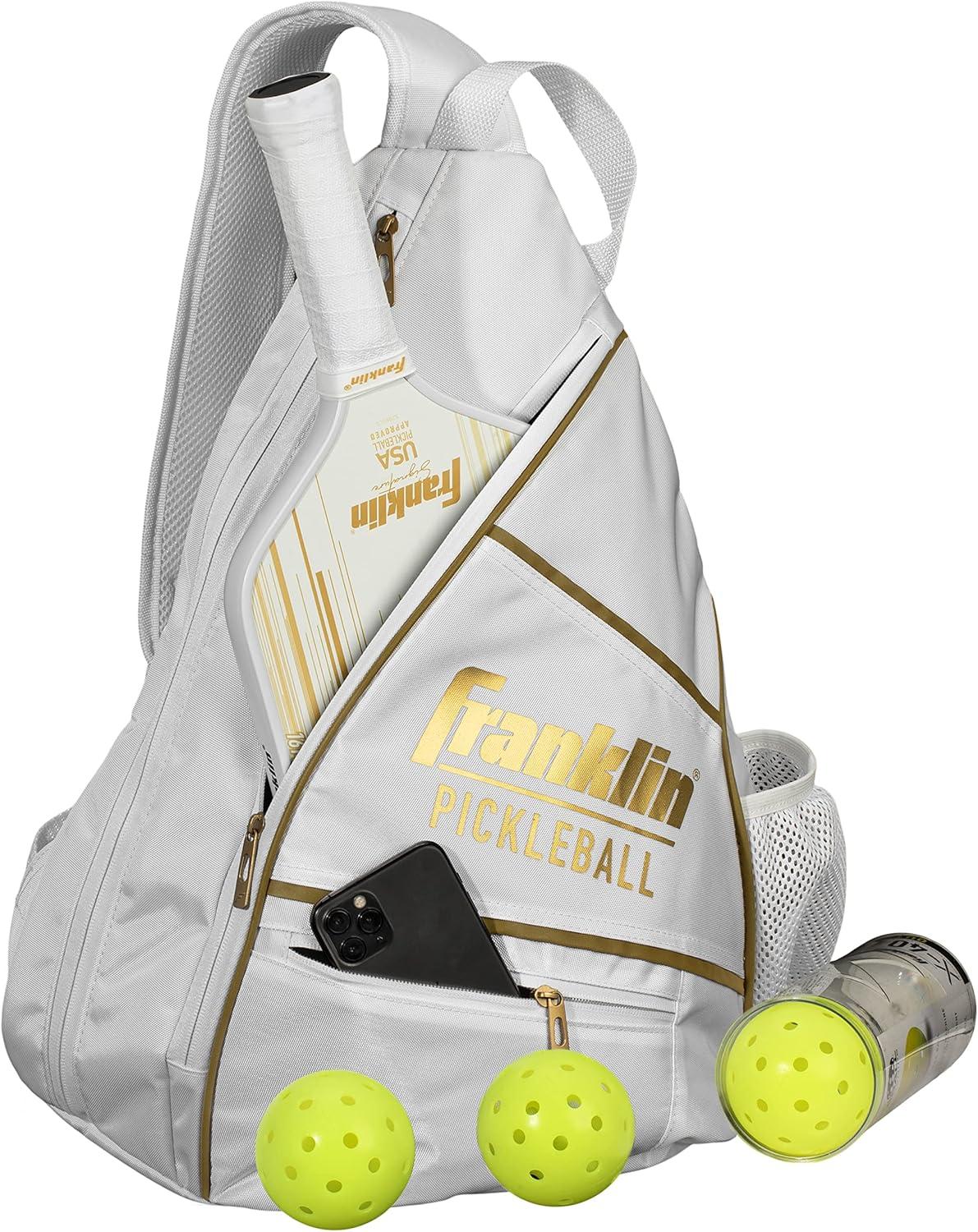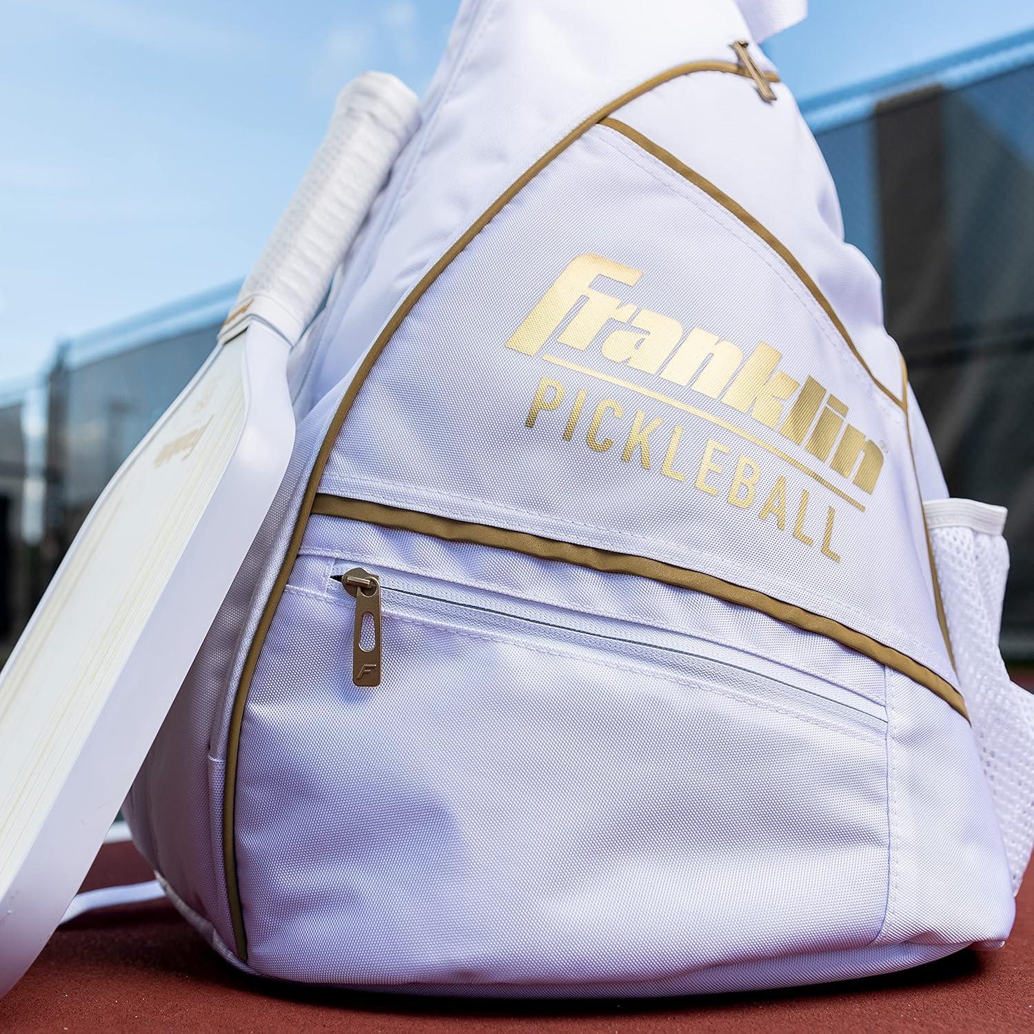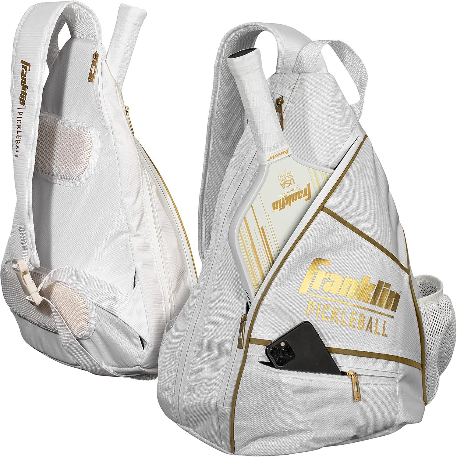 Franklin Sports Pickleball Bags – Sling Bag Backpack for Gear + Equipment – Men + Women – Holds Paddles, Balls + Accessories(White/Gold)