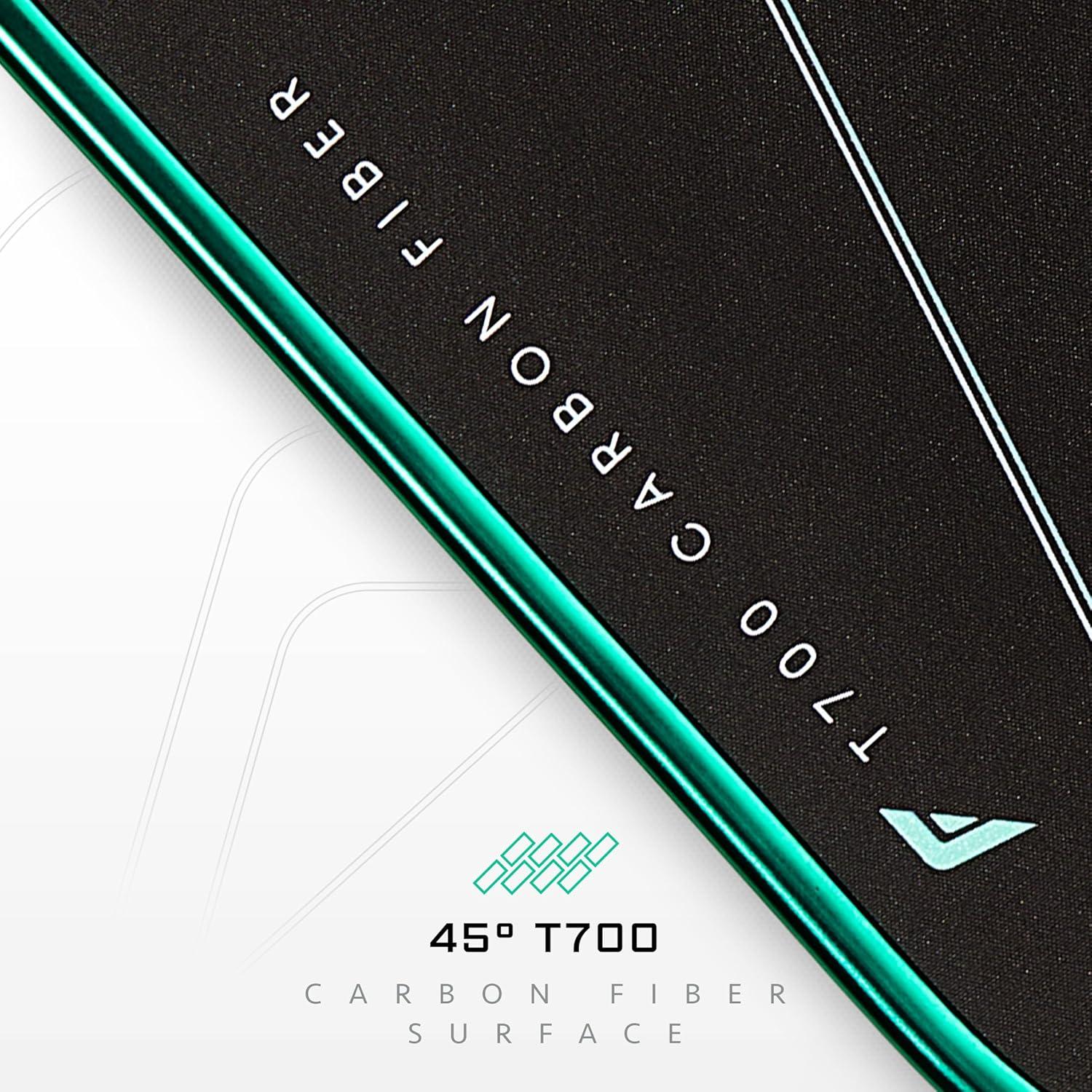 45 DEGREE CARBON SURFACE: The T700 Carbon Fiber peel ply texture is applied at a 45 degree angle to provide a natural, consistent texture throughout the entire paddle face, which maximizes grit and spin potential and alllows players to increase shot precision and control