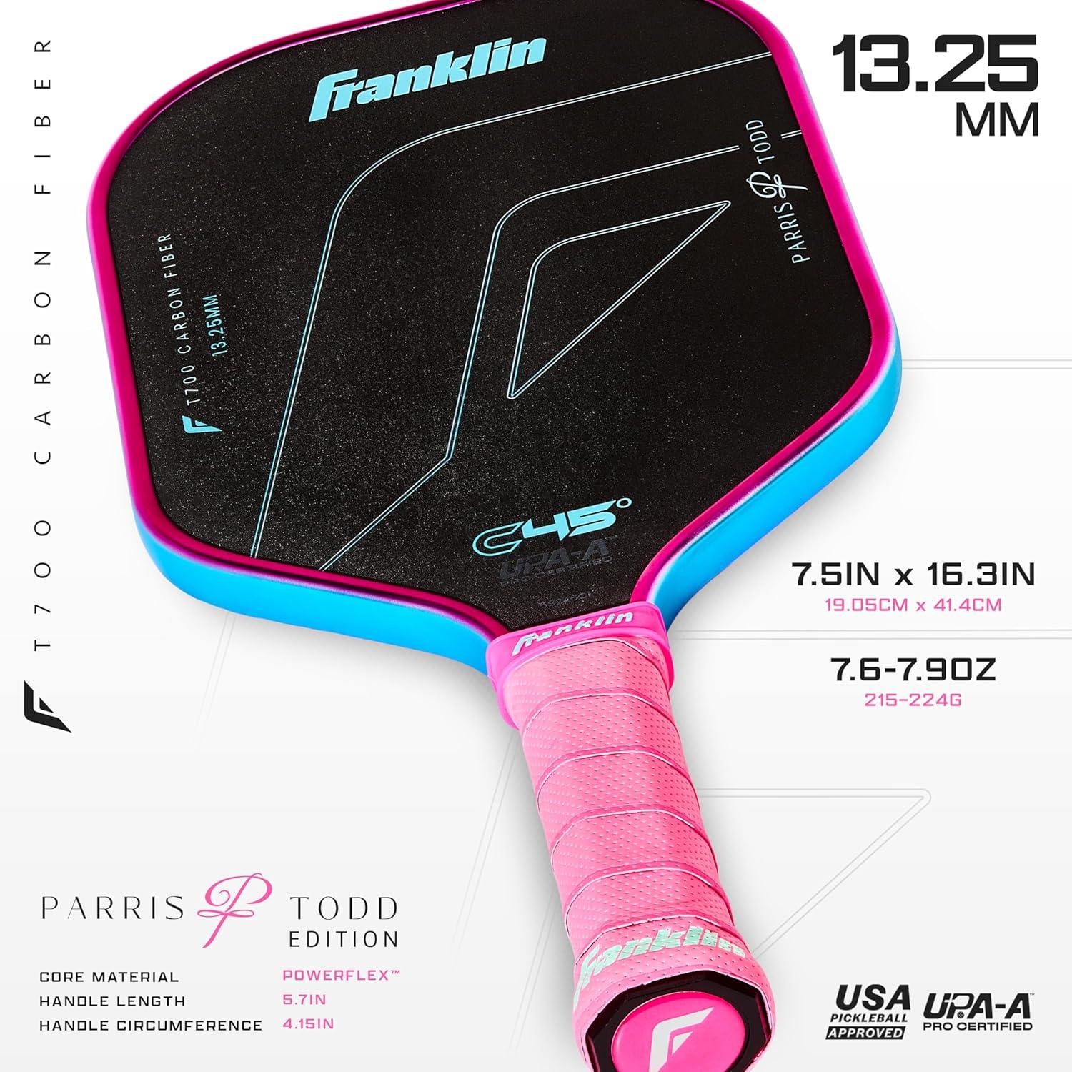 Franklin Sports PRO Pickleball Paddles – C45 Carbon Fiber Series – Official USAP + UPA Approved – Pro Player Design(Pink/Blue)
