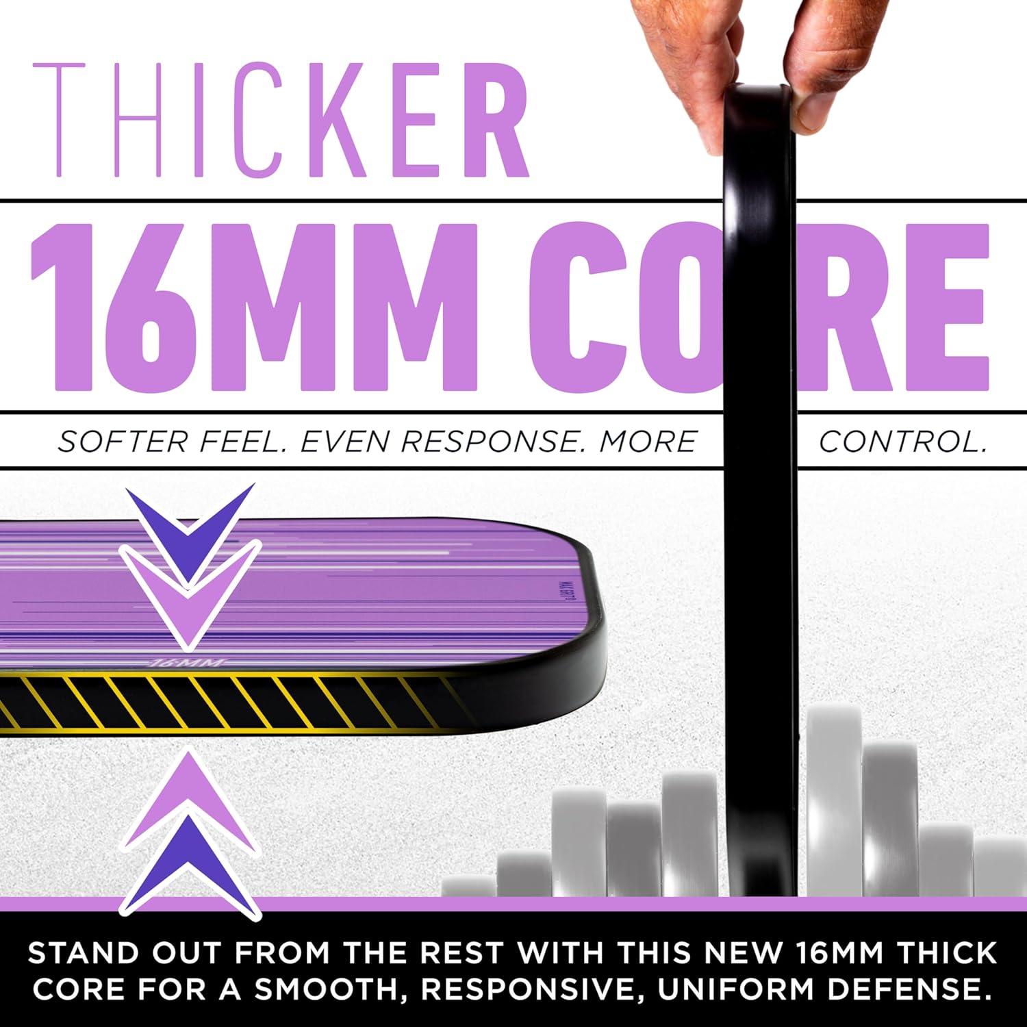 PREMIUM CONSTRUCTION: The 16mm polypropylene paddle core is built for durability and increased power while the fiberglass surface layer ensures a large sweet spot in the center of the paddle for flawless contact and increased control