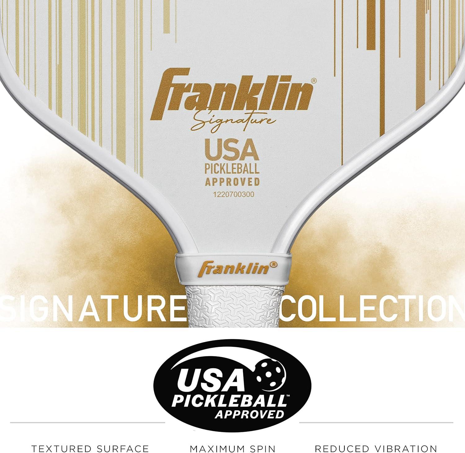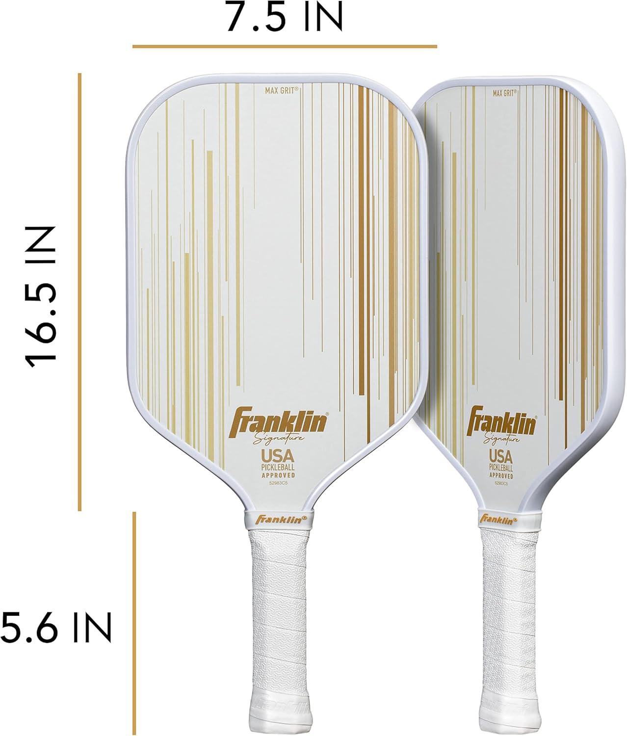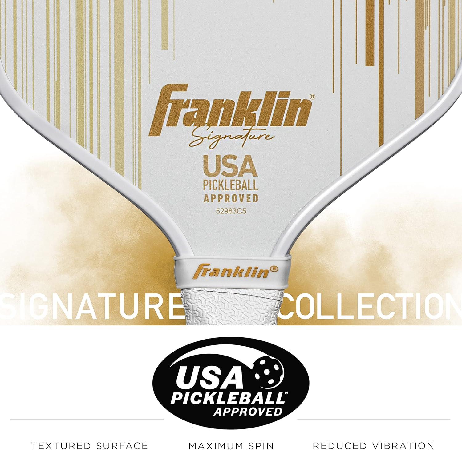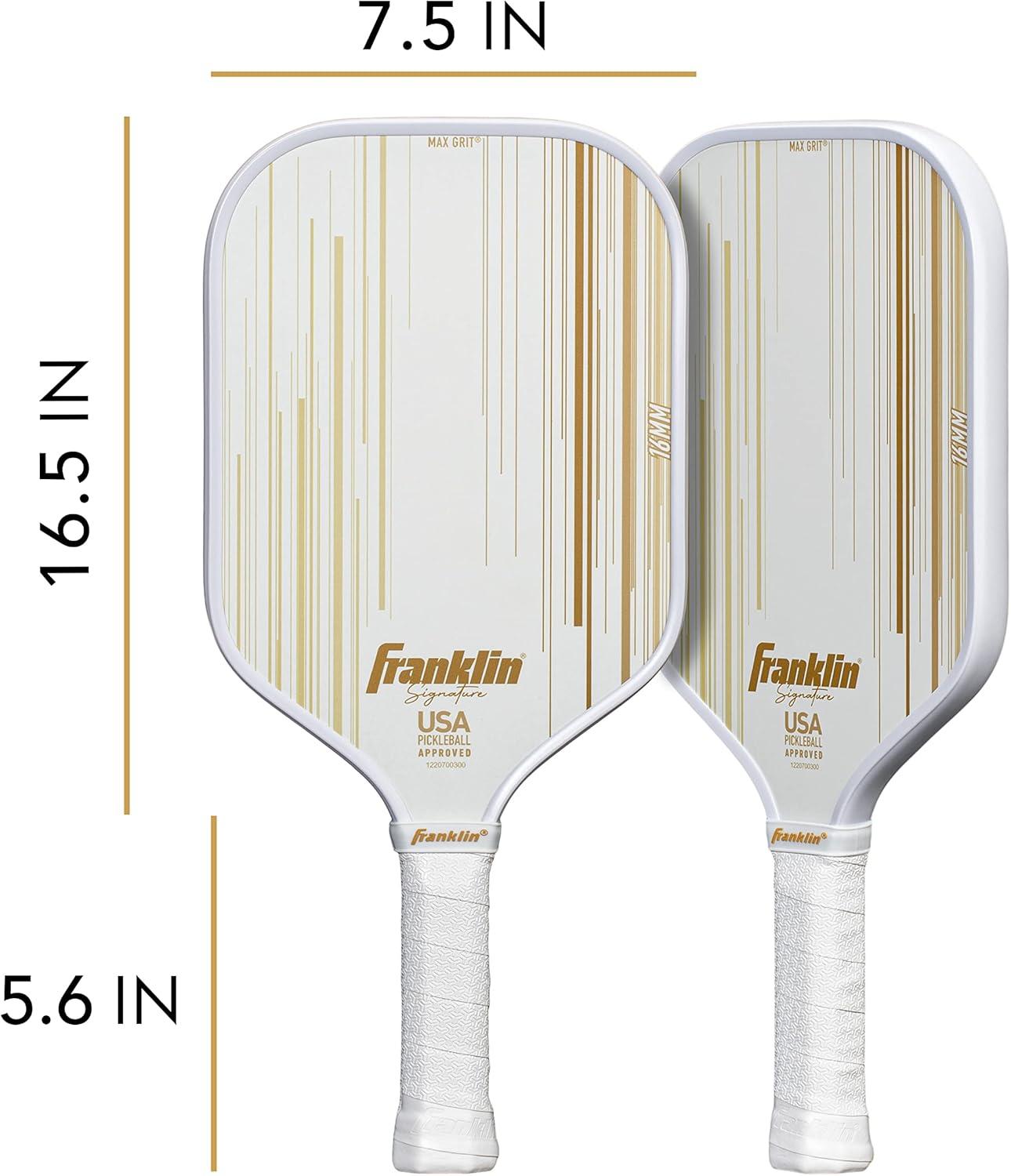 Franklin Sports Pro Pickleball Paddles – Signature Series Pro Pickleball Paddle with MaxGrit Surface – USA Pickleball (USAPA) Approved Tournament Pickleball Paddles – 13mm + 16mm Polypropylene Cores(Pro Player – Gold)