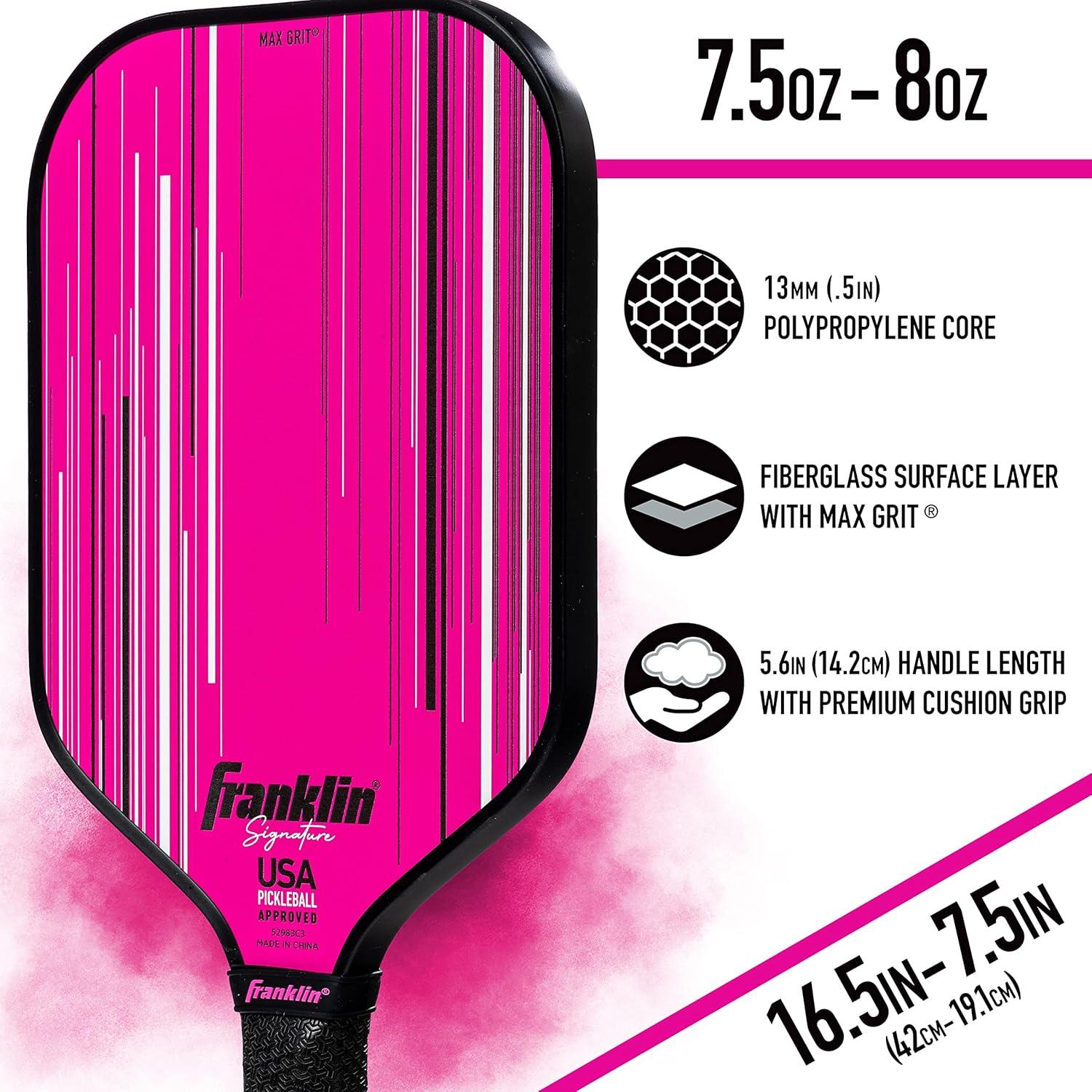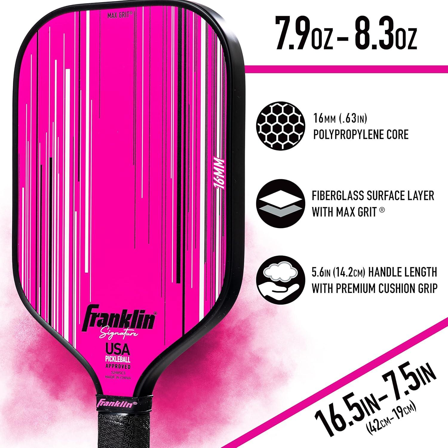 Franklin Sports Pro Pickleball Paddles – Signature Series Pro Pickleball Paddle with MaxGrit Surface – USA Pickleball (USAPA) Approved Tournament Pickleball Paddles – 13mm + 16mm Polypropylene Cores(Pro Player – Pink)