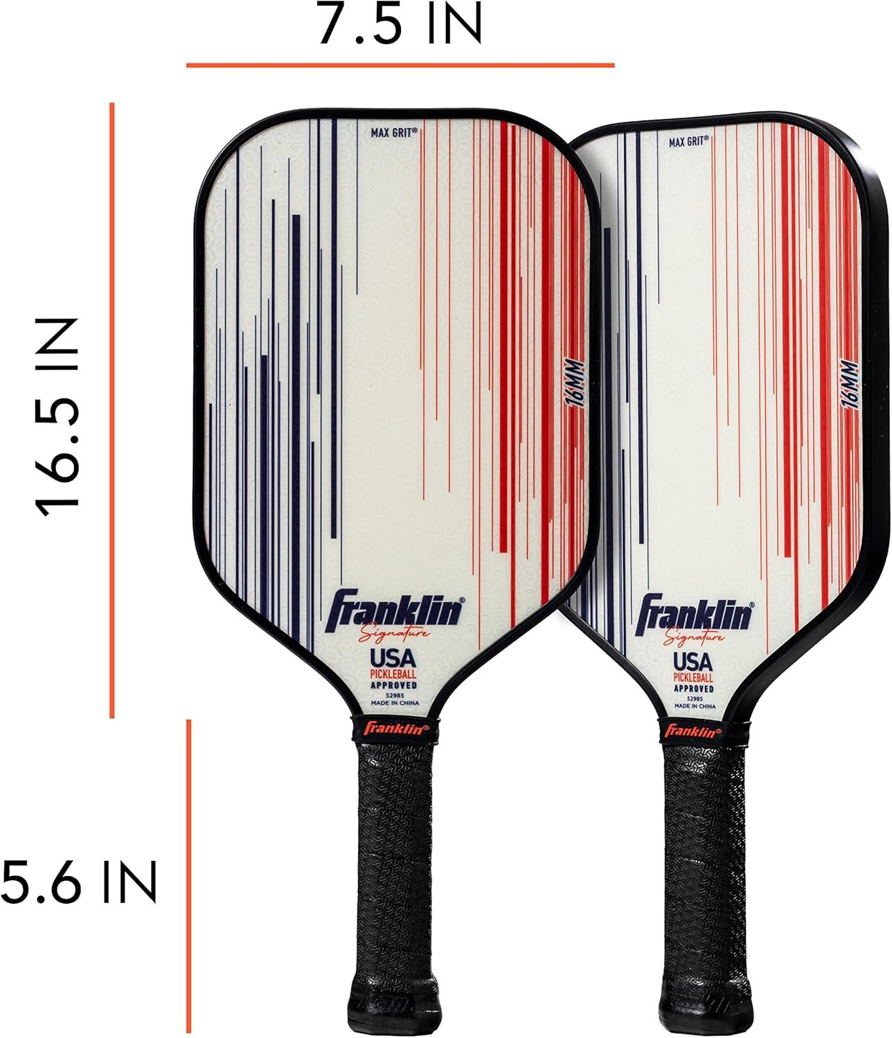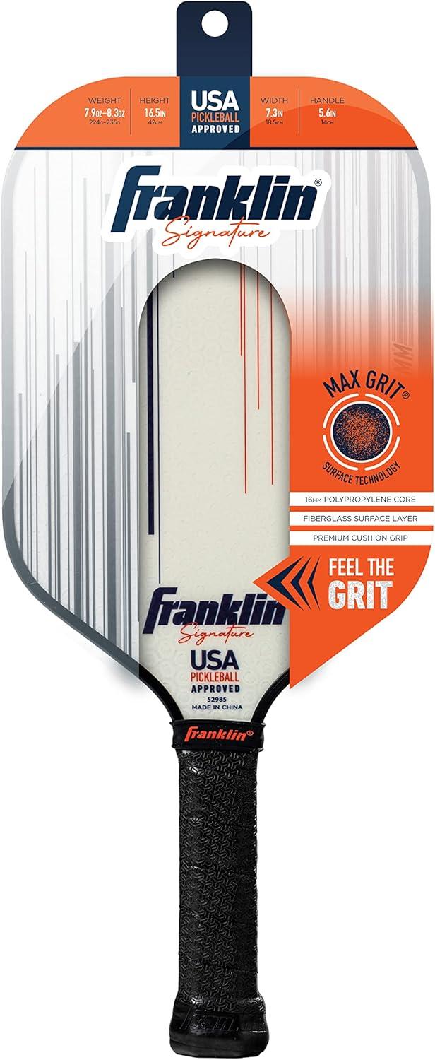Franklin Sports Pro Pickleball Paddles – Signature Series Pro Pickleball Paddle with MaxGrit Surface – USA Pickleball (USAPA) Approved Tournament Pickleball Paddles – 13mm + 16mm Polypropylene Cores(Pro Player – White)