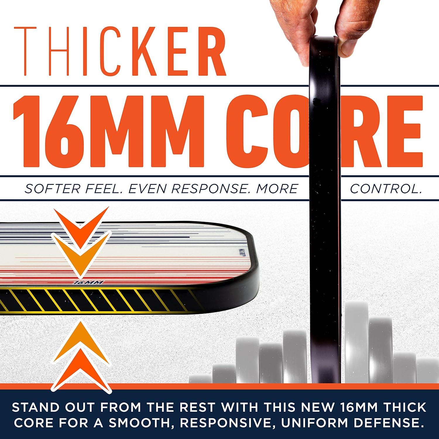 PREMIUM CONSTRUCTION: The 16mm polypropylene paddle core is built for durability and increased power while the fiberglass surface layer ensures a large sweet spot in the center of the paddle for flawless contact and increased control
