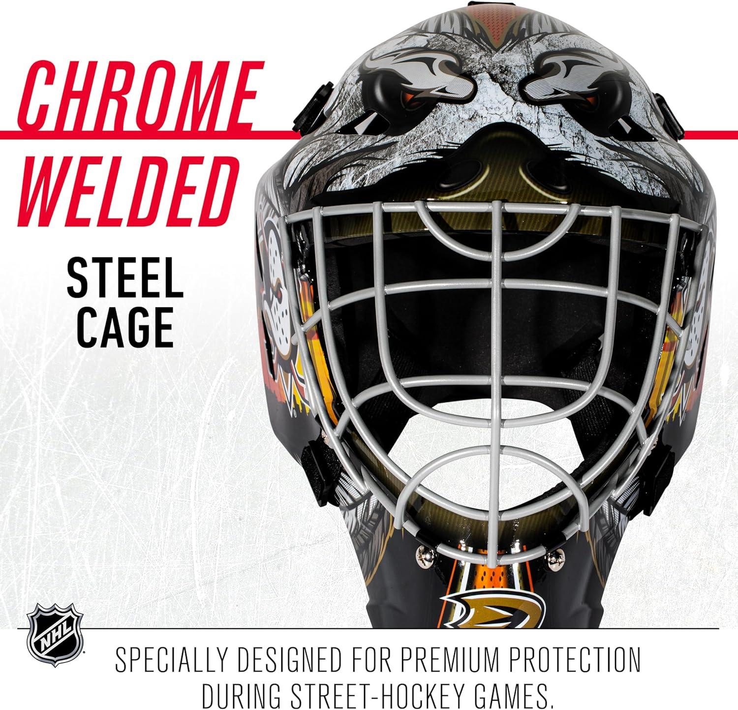Franklin Sports Team Licensed NHL Hockey Goalie Face Mask – Goalie Mask for Kids Street Hockey – Youth NHL Team Street Hockey Masks(Anaheim Ducks 2)