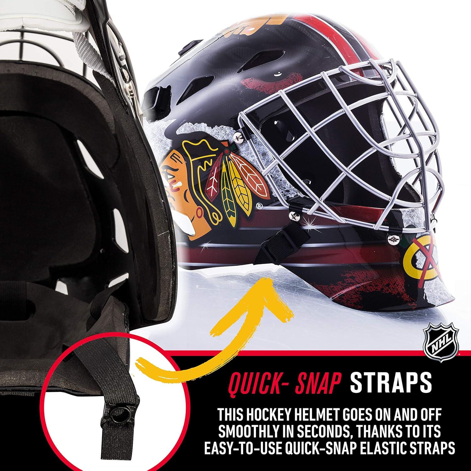 Franklin Sports Team Licensed NHL Hockey Goalie Face Mask – Goalie Mask for Kids Street Hockey – Youth NHL Team Street Hockey Masks(Chicago Blackhawks)