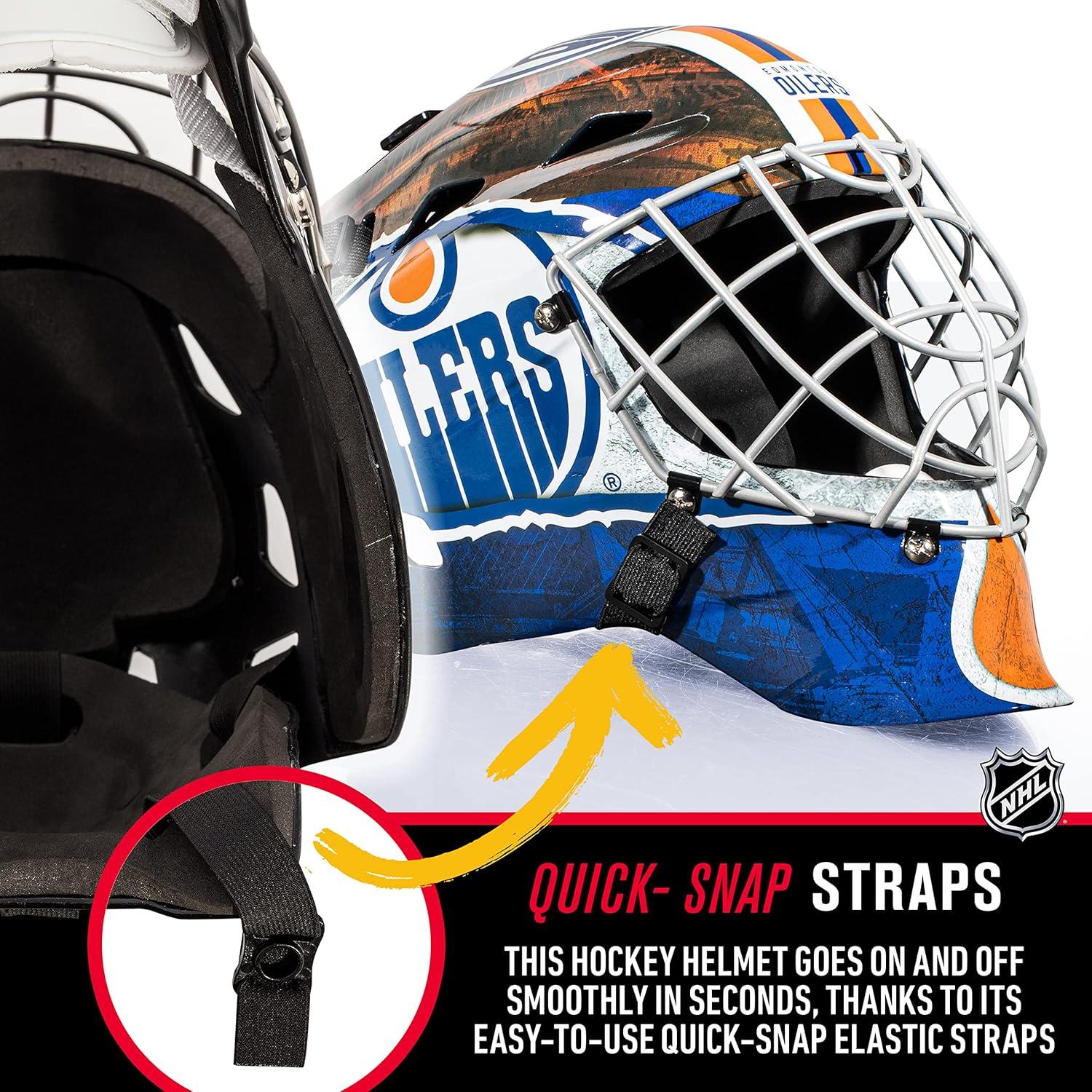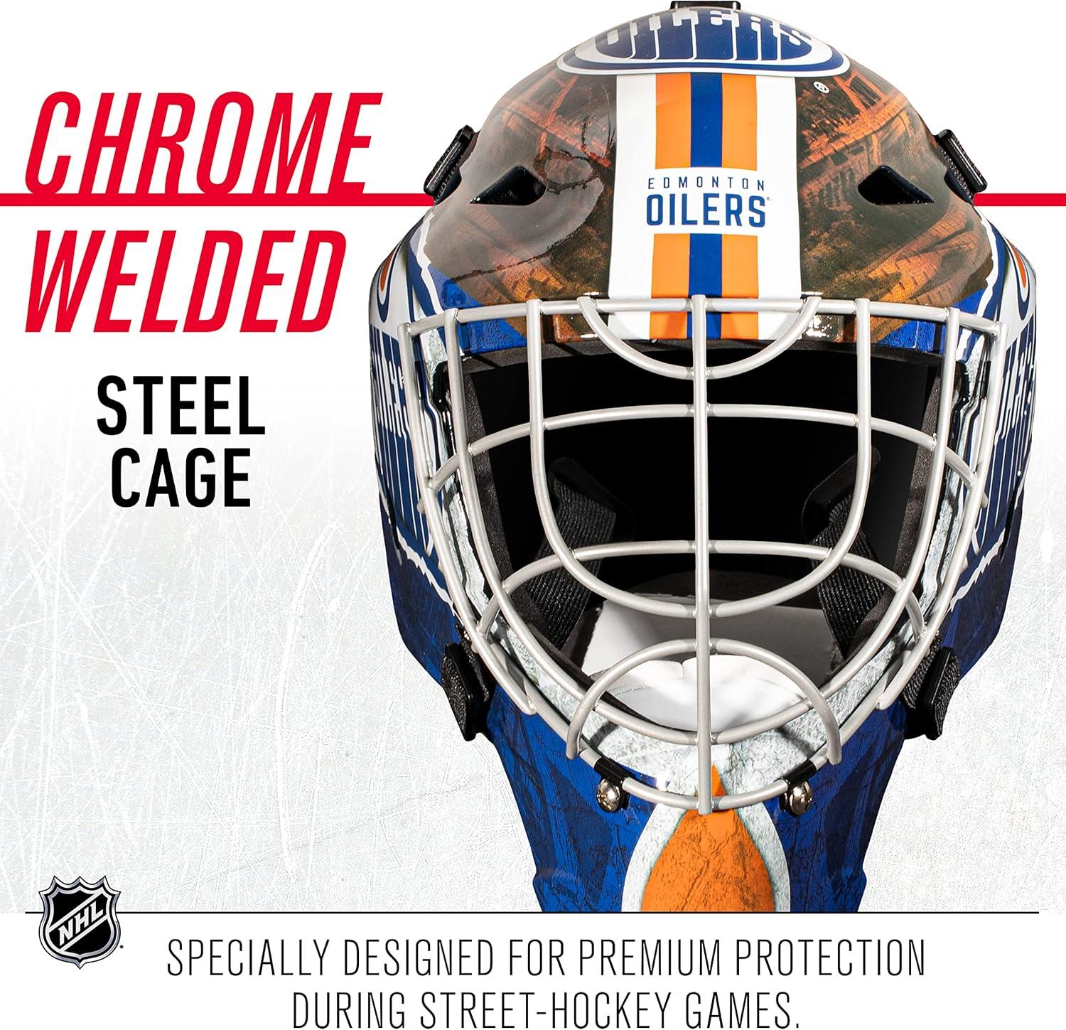 Franklin Sports Team Licensed NHL Hockey Goalie Face Mask – Goalie Mask for Kids Street Hockey – Youth NHL Team Street Hockey Masks(Edmonton Oilers)