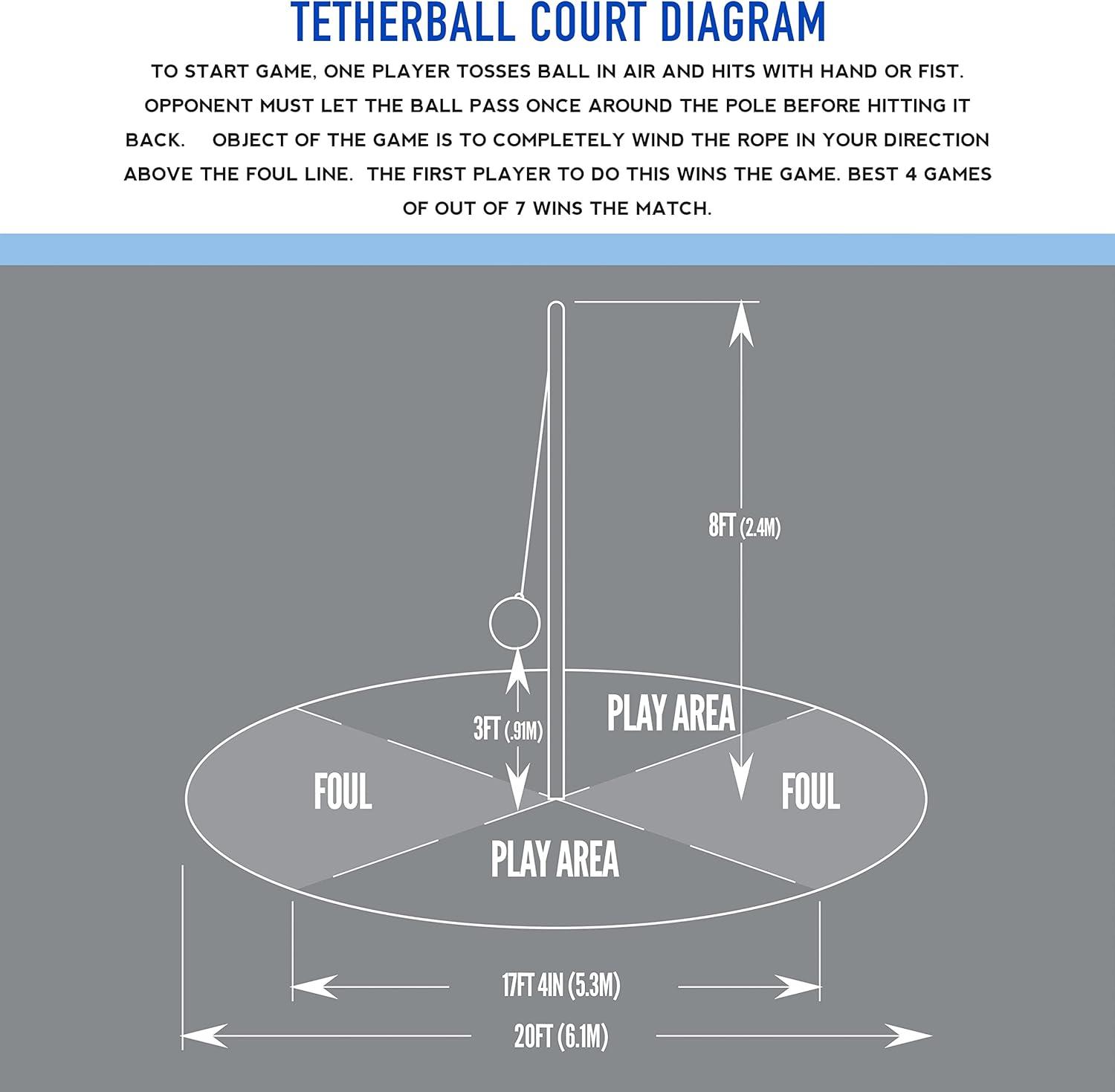 DIMENSIONS: The pole assembles to 8' feet in height with a 7' foot long rope for a full playing diameter of 14' feet