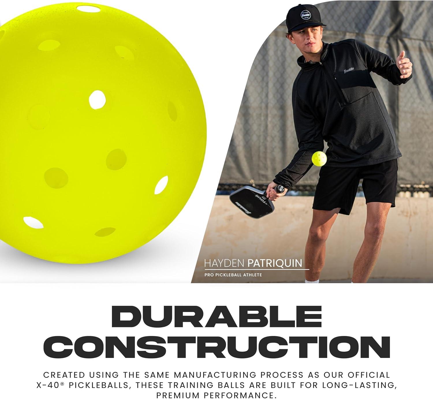 DURABLE CONSTRUCTION: Created using the same manufacturing process as our official X-40 pickleballs, these training balls are built for long-lasting, premium performance