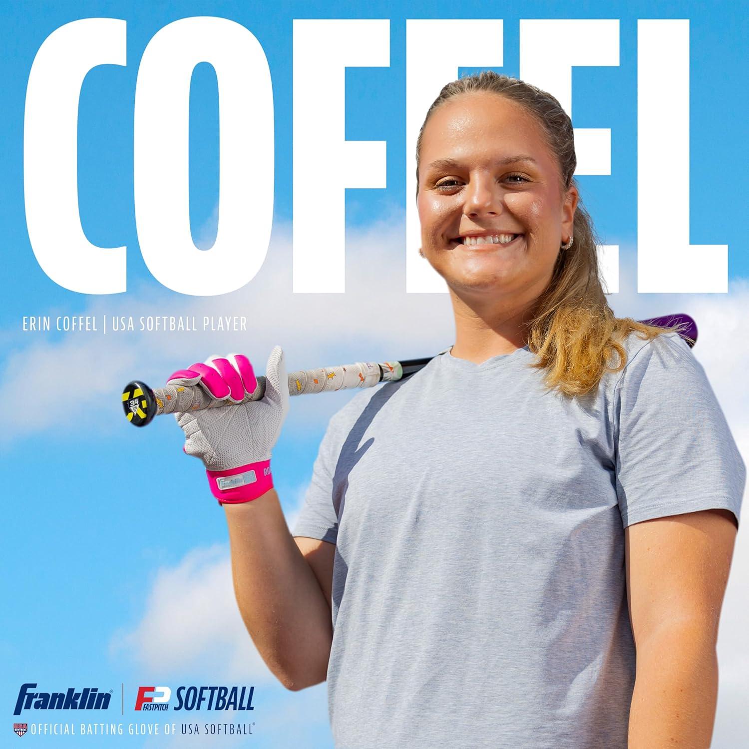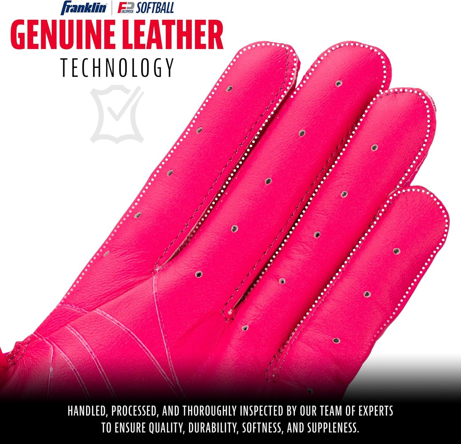 Franklin Sports USA Softball Women’s Batting Gloves -Fastpitch + Slowpitch Girl’s Gloves – Adult + Youth Pairs(Pink)