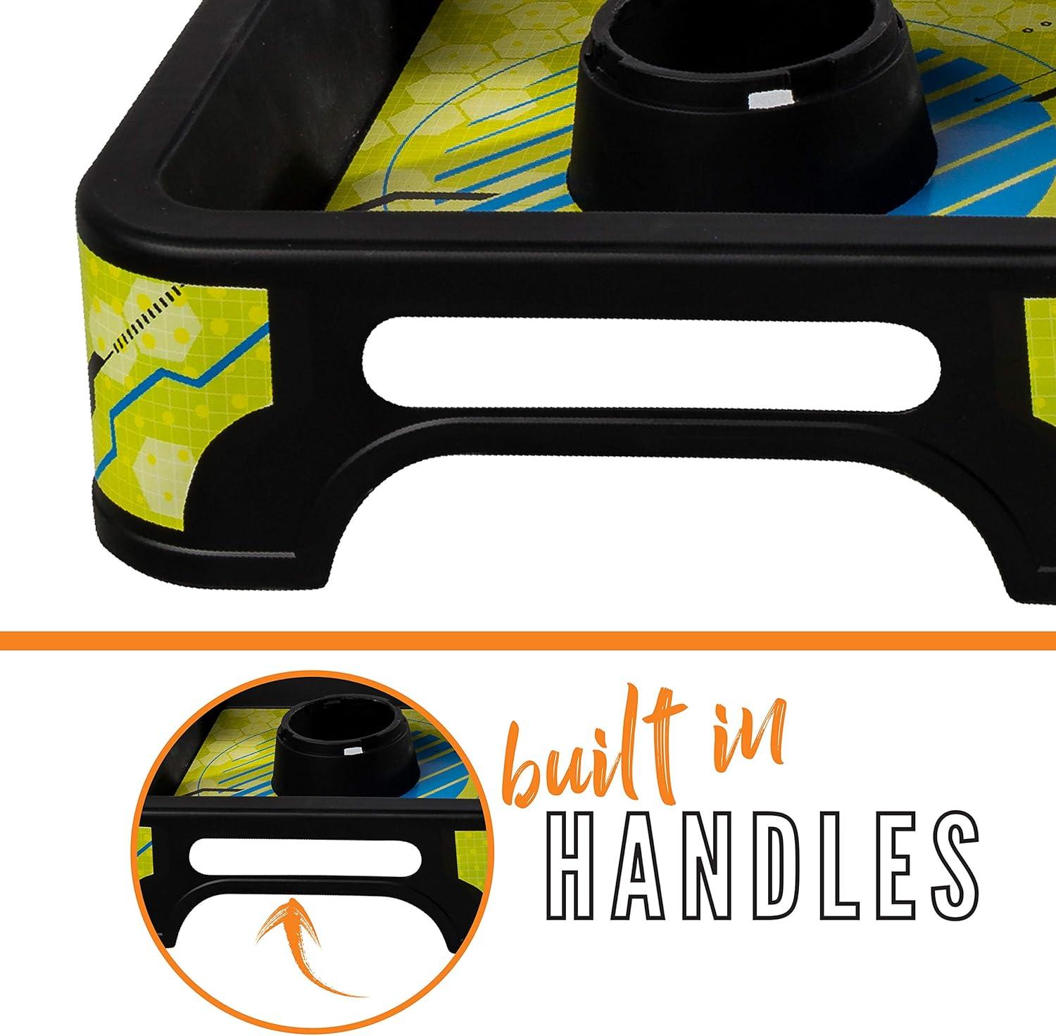 OFFICIAL SIZE foldable washer set let's you take your game with you. Collapsible Fold and Go design makes this a fun, portable game you can play almost anywhere.