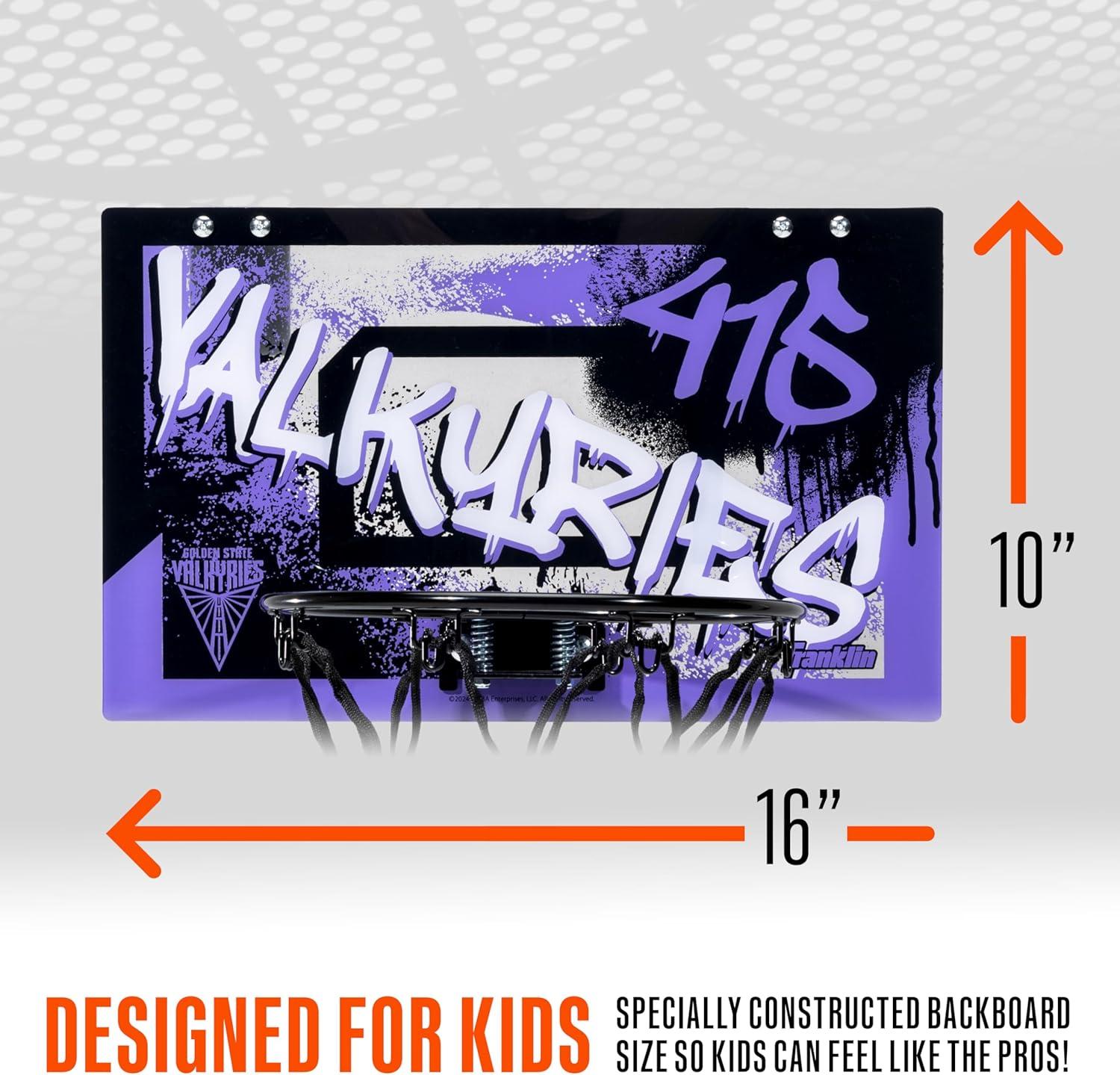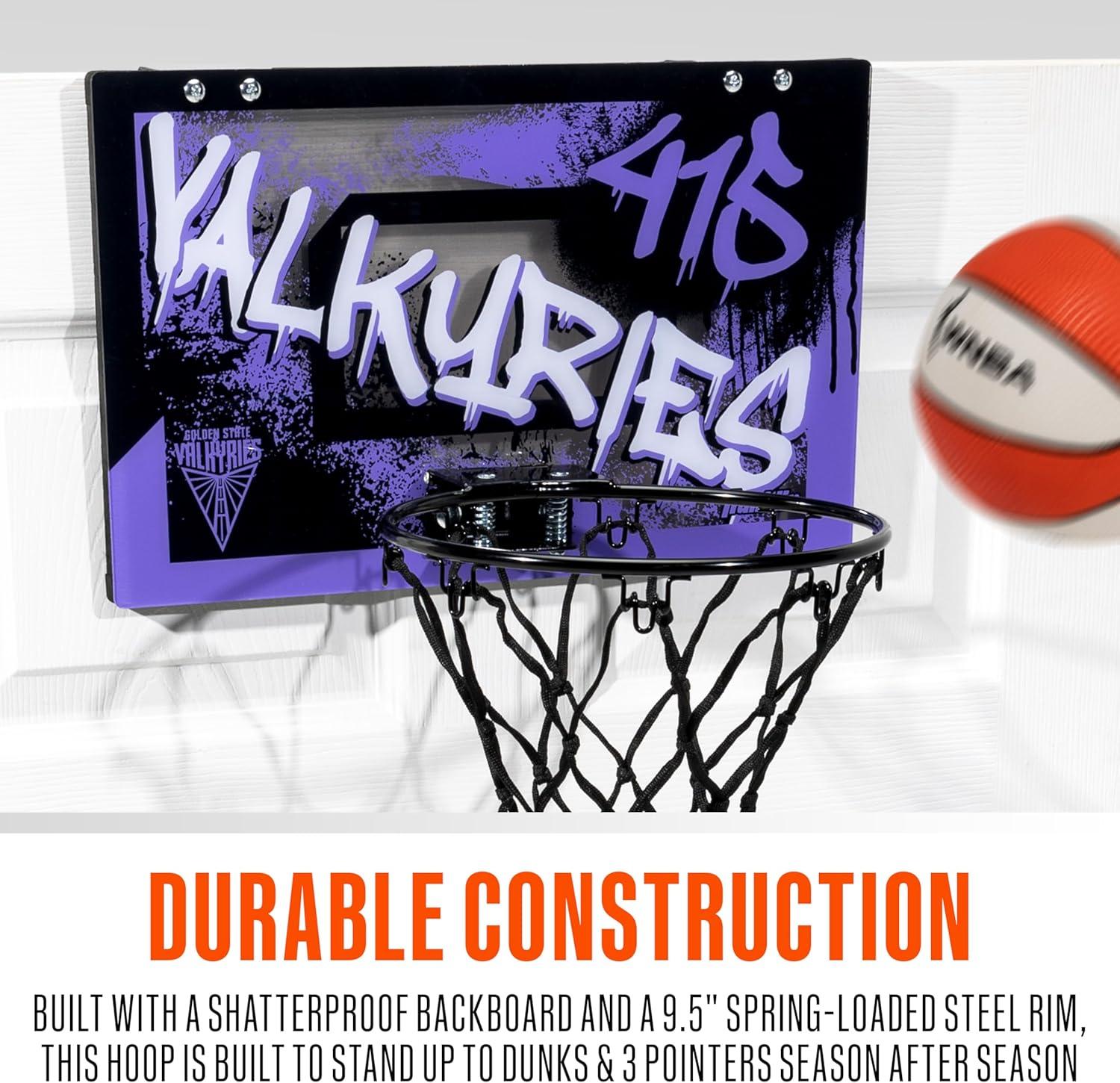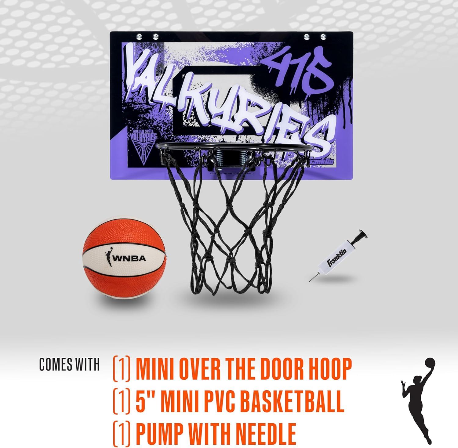Franklin Sports WNBA Team Over The Door Basketball Hoops – Kids Indoor Mini Basketball Hoop + Ball Set – WNBA Fan Mini Hoops(Golden State Valkyries)
